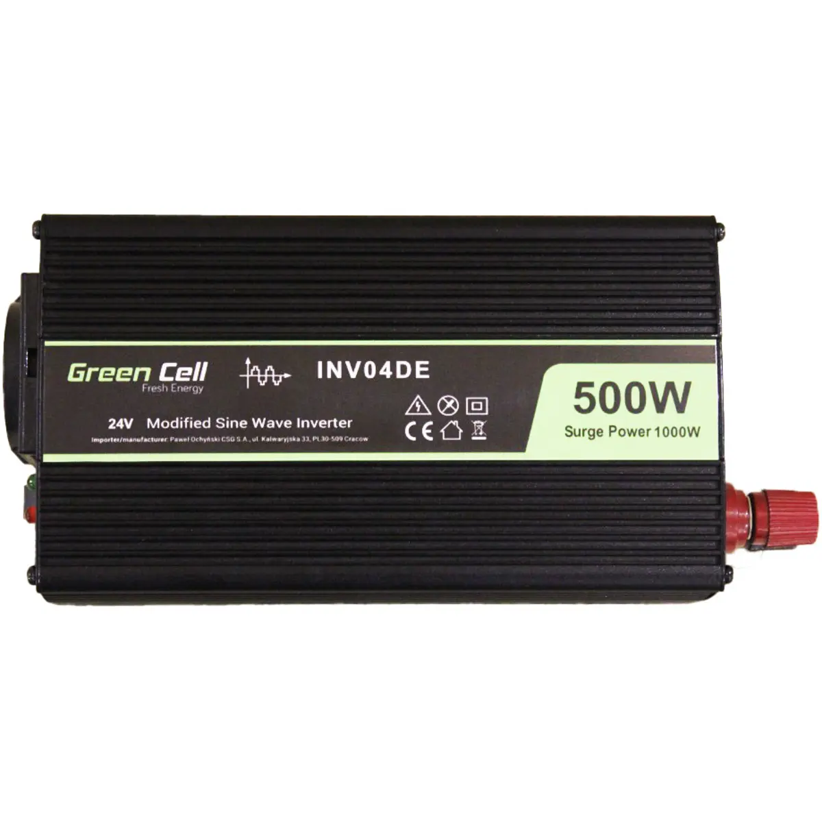 Green Cell INV04DE - Inversor 24VDC ➝ 230V onda sinusoidal modificada 500W c/ USB e ficha de isqueiro