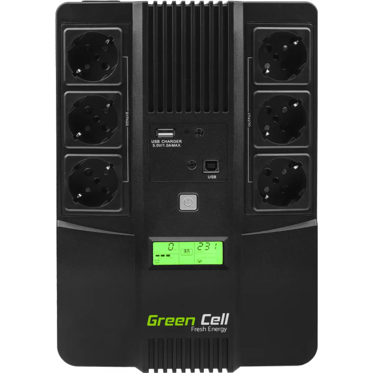 Esta fonte de alimentação de emergência (UPS) da Green Cell fornece protecção total para qualquer equipamento ligado durante perdas de energia e picos de corrente. Com ela pode salvar o seu trabalho em segurança e desligar o computador em segurança.