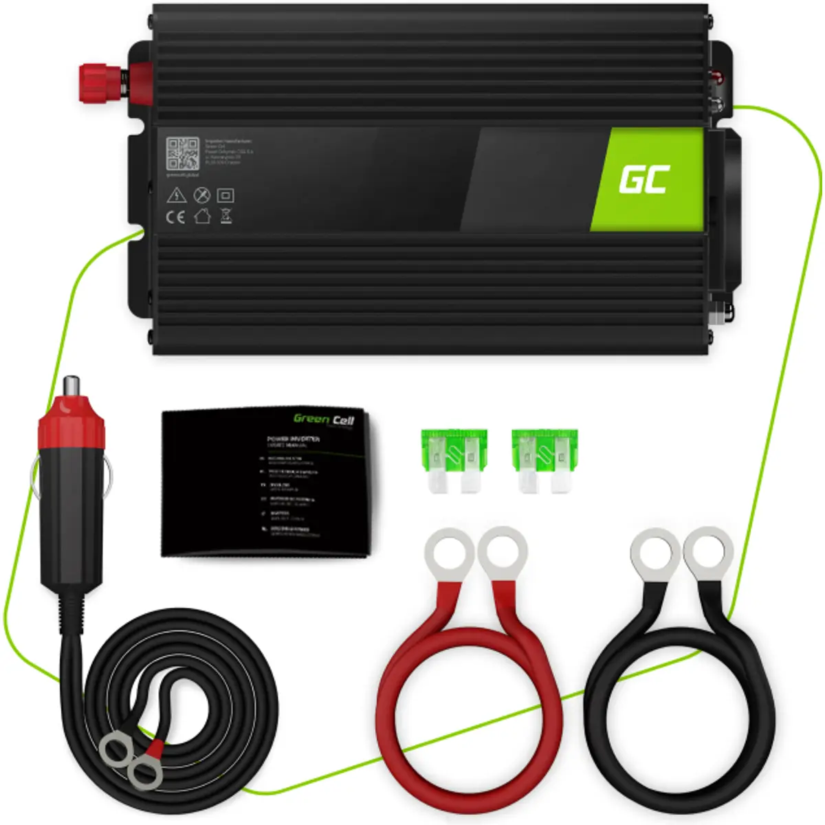 Green Cell INV02DE - Inversor 24VDC ➝ 230V onda sinusoidal modificada 300W c/ USB e ficha de isqueiro