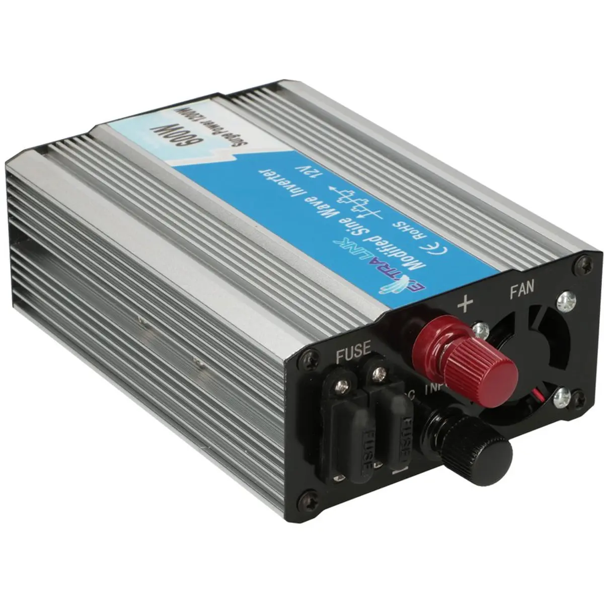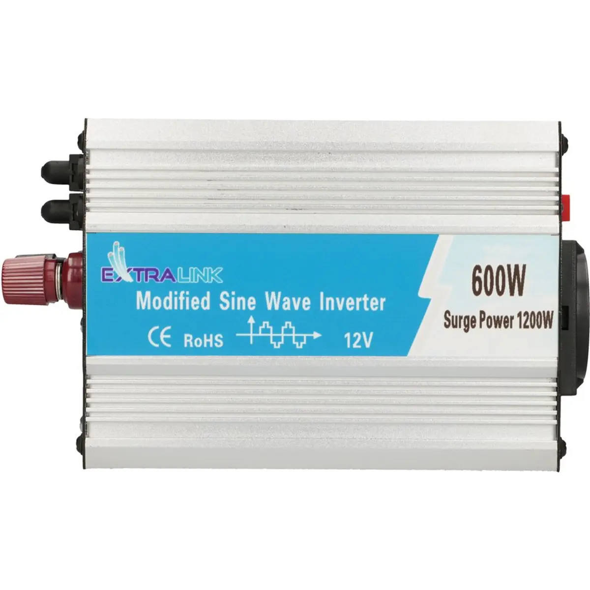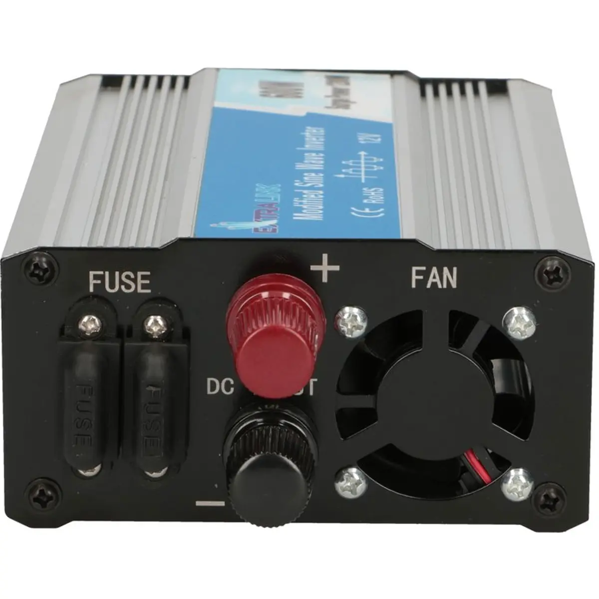 O inversor de tensão Extralink OPIM-300W é um dispositivo que converte a tensão de saída de uma bateria (corrente contínua, DC) em 230V AC (corrente alternada). 230V AC é o tipo de corrente fornecida pelos serviços públicos para alimentar aparelhos domésticos comuns, tais como televisão, frigorífico, rádio, iluminação ou para carregar um computador portátil/telemóvel, etc.
