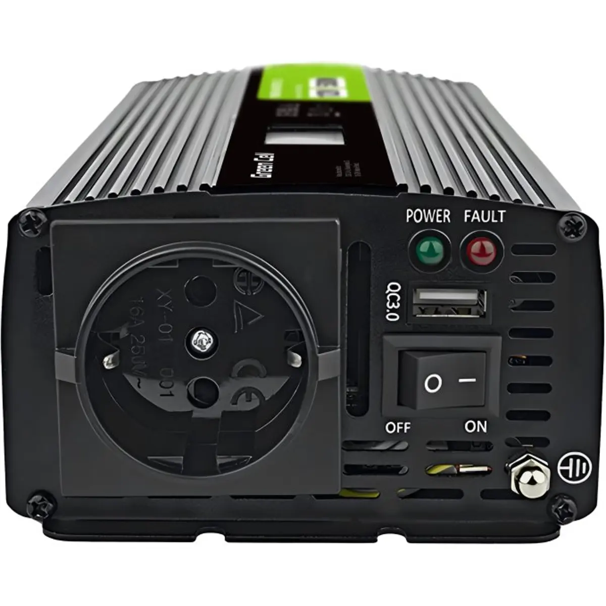 Inversor de energia, que altera a tensão 12V DC de uma bateria de carro para 230V AC. Com esta solução, pode utilizar qualquer aparelho elétrico na estrada, onde quer que vá.