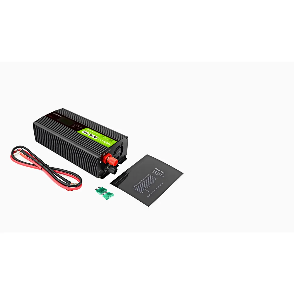 ✅ Entrada de 12V DC e saída de 230V AC com potência nominal de 500W e potência de pico de 1000W.