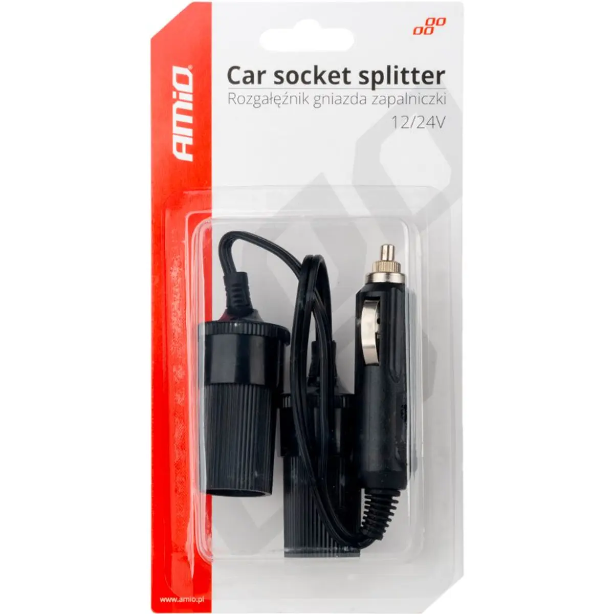 AMiO - Adaptador para isqueiro macho para 2 fêmeas 12/24VDC 5A - 250mm