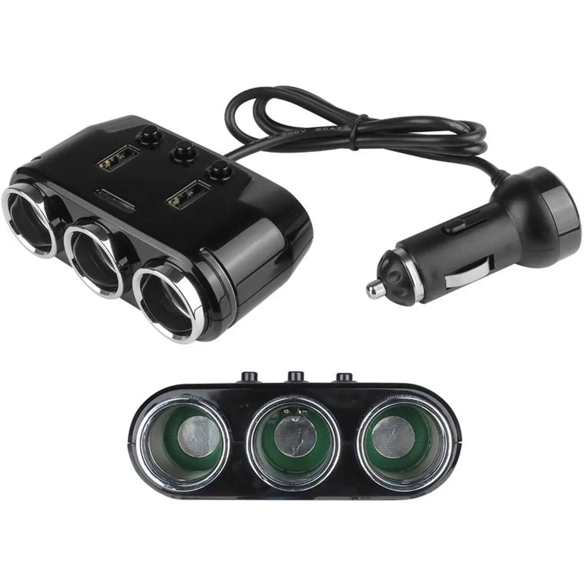 - Interruptores independentes para cada tomada de isqueiro automóvel, permitindo ligar e desligar os dispositivos conforme necessário