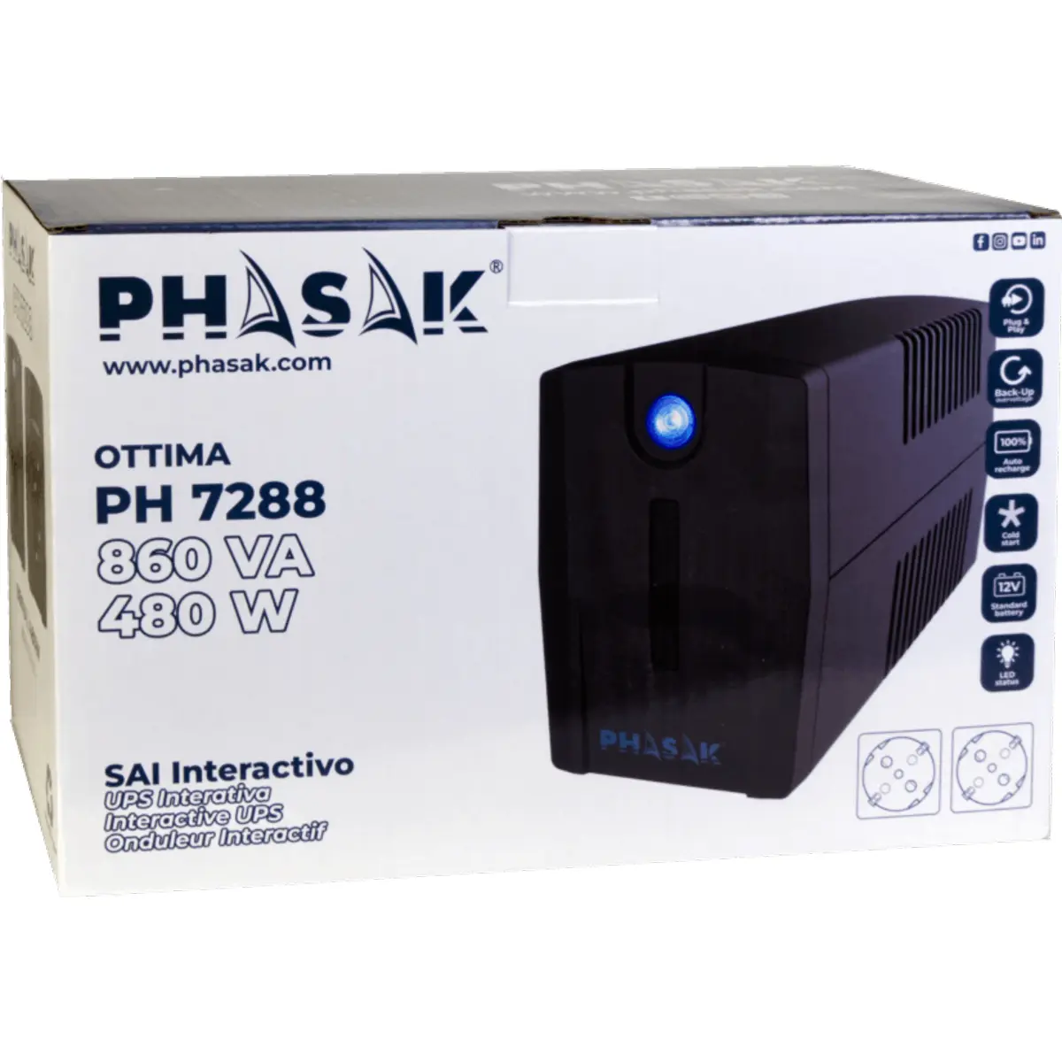 Phasak Ottima PH 7288 - UPS interativa 860VA 480W c/ 2x Schuko