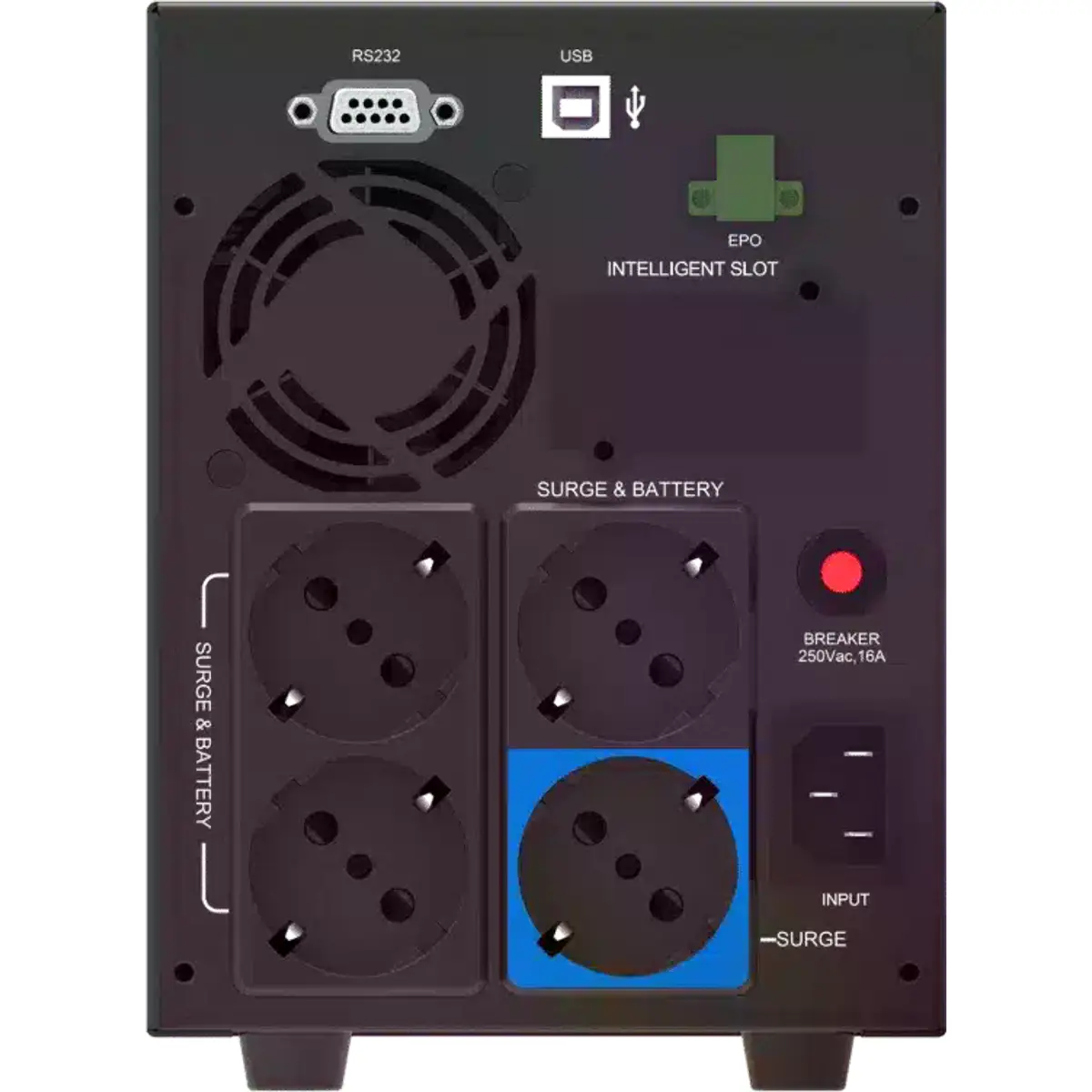 - Portas USB HID, EPO, RS232, Slot SNMP (opcional)