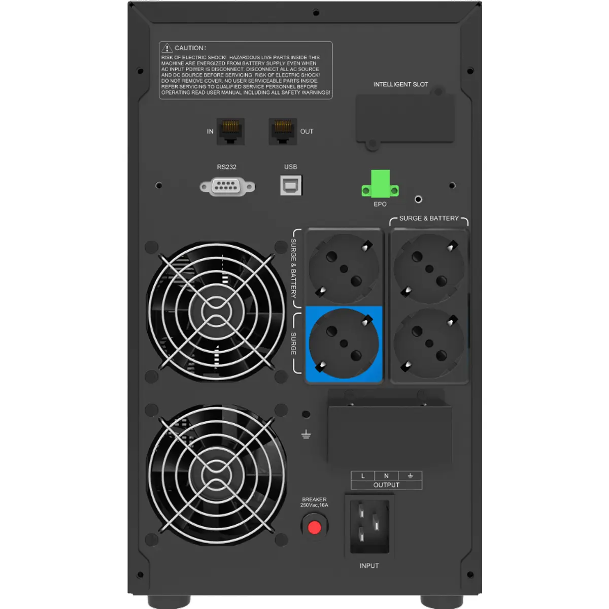 Com 3160 VA de potência e quatro baterias de 12V / 9Ah, proporciona elevada autonomia e estabilidade. O chassis de maiores dimensões acomoda componentes robustos, mantendo uma excelente ventilação e acessibilidade. Conta com monitorização avançada, porta RJ45 e conectividade SNMP opcional.