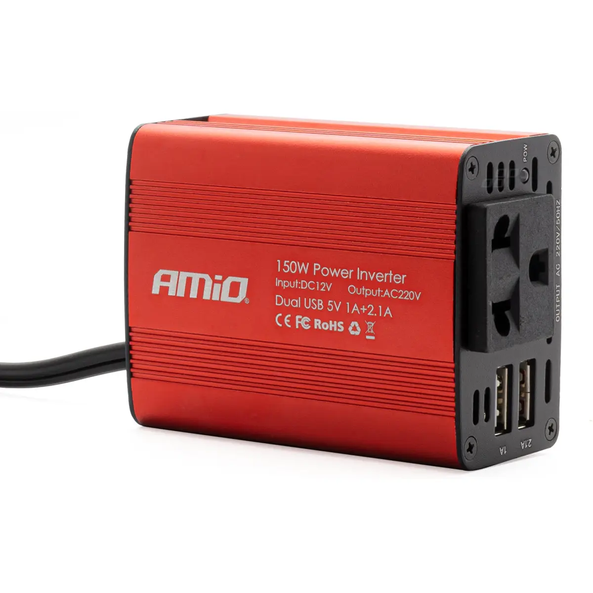 Converte corrente contínua de 12 V DC em corrente alternada de 230 V AC com onda sinusoidal modificada. Ideal para alimentar pequenos dispositivos em viagem, inclui 2 portas USB para carregamento direto de equipamentos a 5 V.