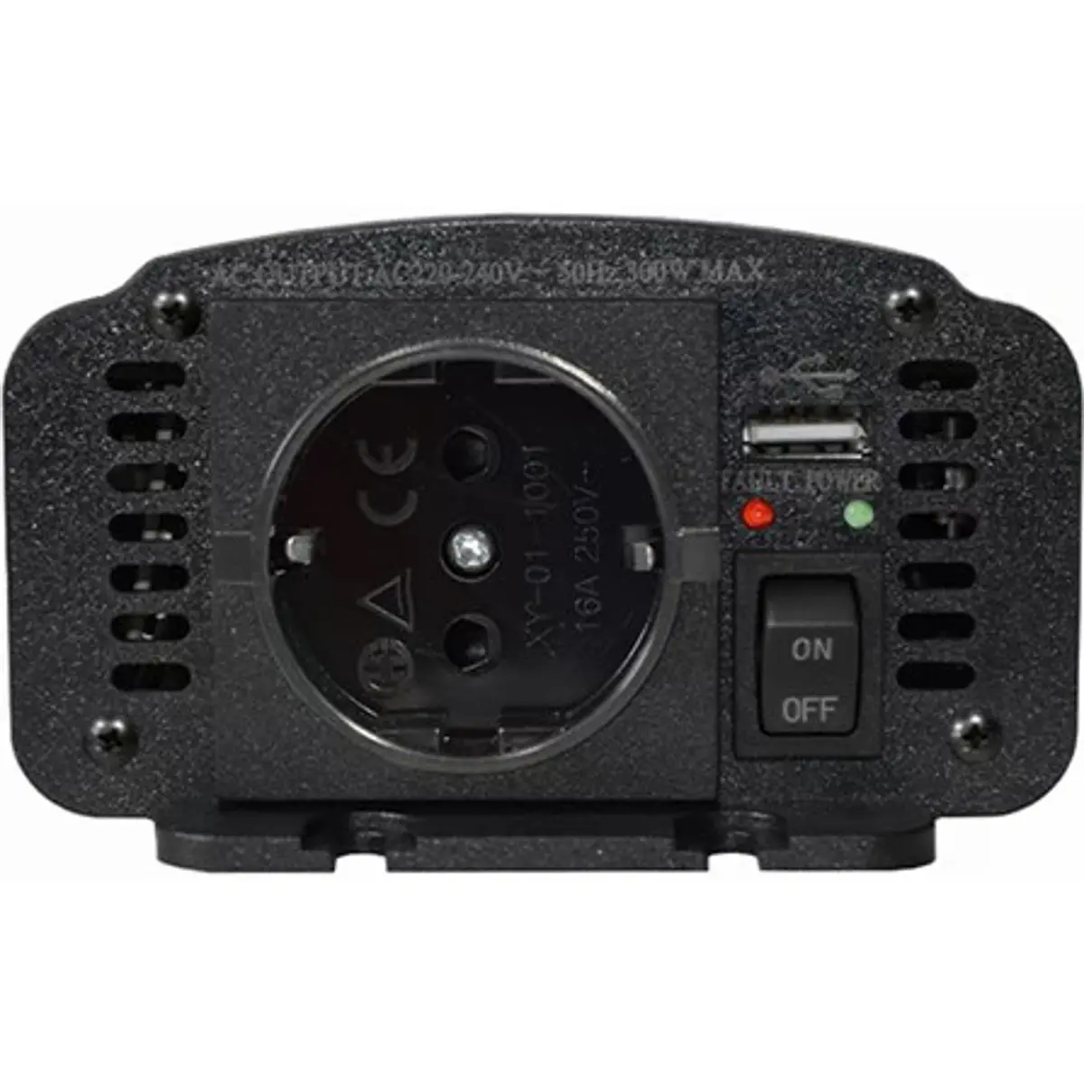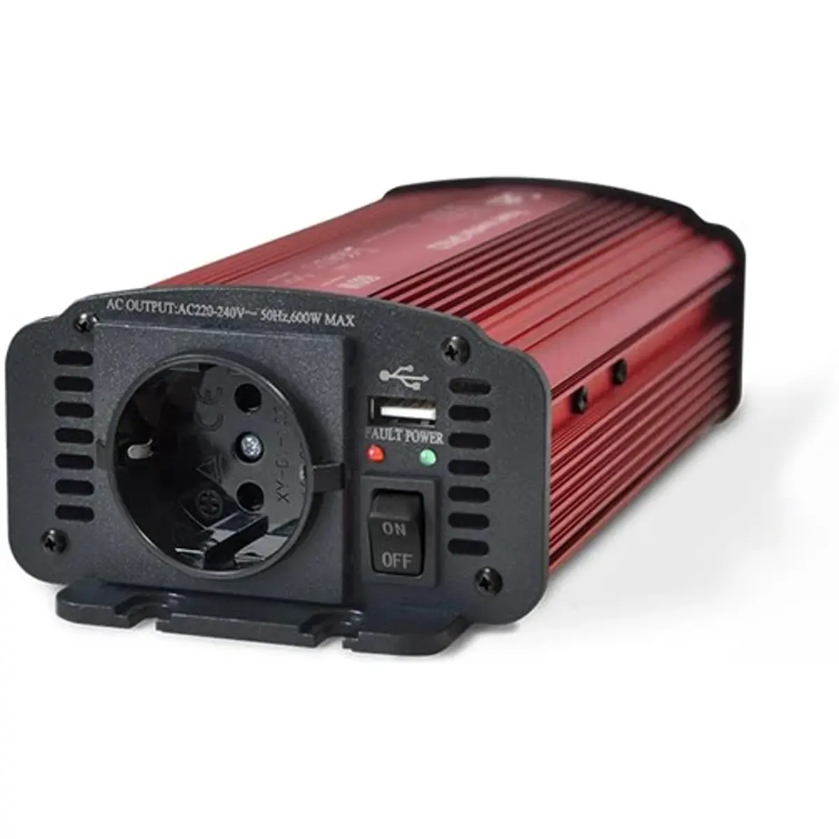 O inversor converte corrente contínua de 12V DC em corrente alternada de 230V AC, permitindo a ligação de diversos aparelhos elétricos de 230V a uma fonte de energia como automóveis, barcos, sistemas solares em casas de campo ou durante acampamentos. Ideal para alimentar câmaras digitais, telemóveis, computadores portáteis, impressoras, candeeiros, leitores CD/DVD, rádios, entre outros equipamentos, com um consumo máximo até 600W.