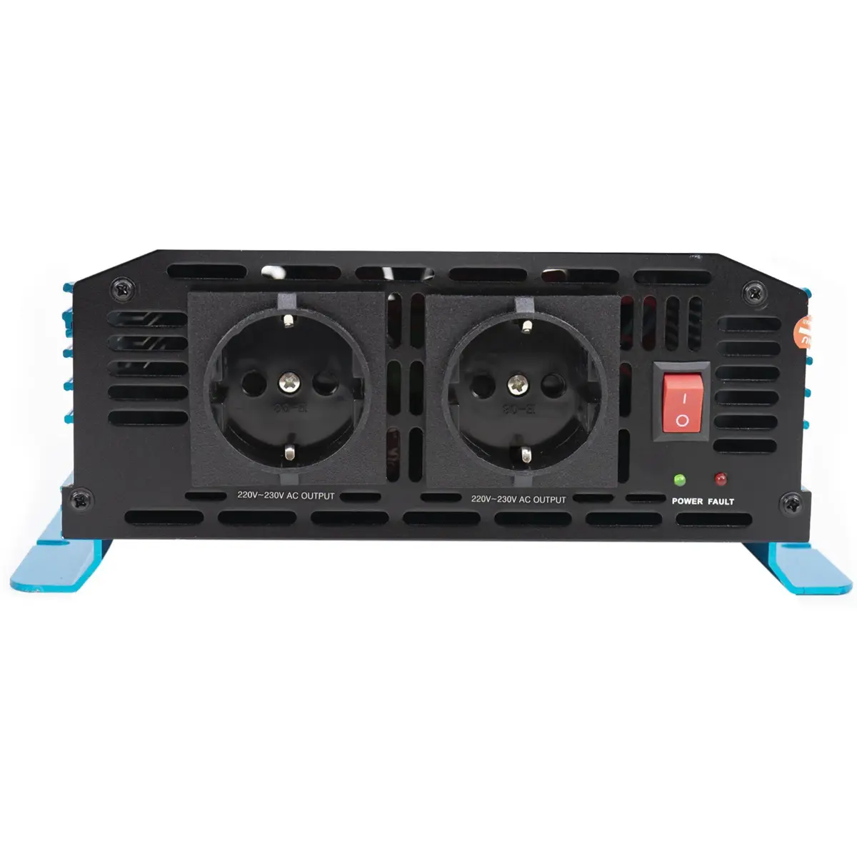 A utilização de onda sinusoidal pura garante uma corrente de saída estável e equivalente à da rede elétrica, assegurando compatibilidade total com equipamentos eletrónicos mais delicados e evitando ruídos, interferências ou mau funcionamento. O inversor está equipado com ventilação ativa e estrutura em alumínio, para dissipação térmica eficiente mesmo em cargas elevadas. Integra também múltiplos sistemas de proteção (sobrecarga, curto-circuito, sobreaquecimento, subtensão e sobretensão), garantindo um funcionamento seguro e fiável em diferentes cenários de utilização.
