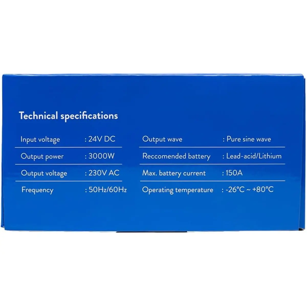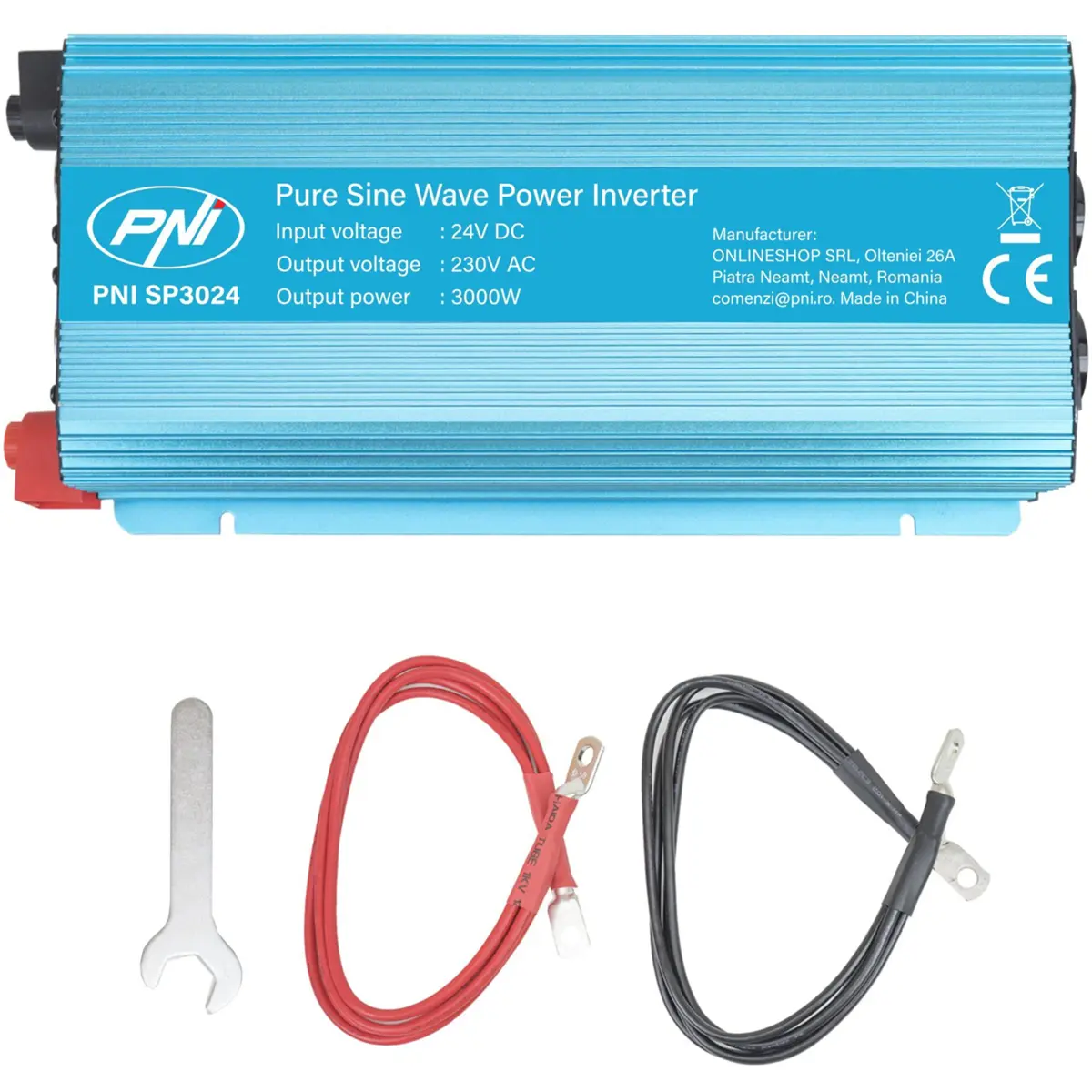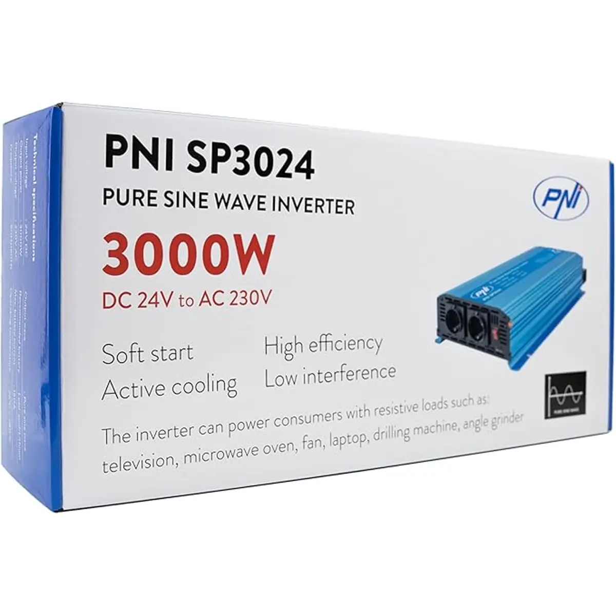 O PNI SP3024 é um inversor de tensão de elevada potência, concebido para converter corrente contínua de 24 V (DC) em corrente alternada de 230 V (AC), ideal para aplicações exigentes em veículos pesados, sistemas autónomos ou instalações técnicas. Com uma potência contínua de 3000 W, permite alimentar uma vasta gama de equipamentos elétricos, incluindo eletrodomésticos, ferramentas, sistemas informáticos e dispositivos sensíveis.