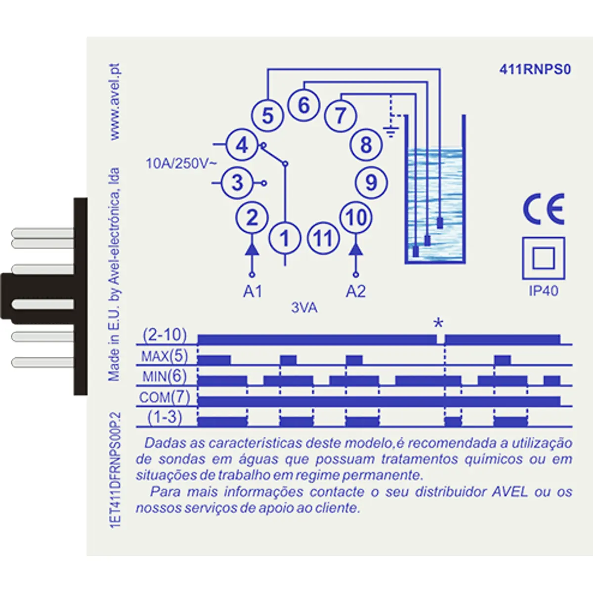 Caso se pretenda rearmar o relé sem que a água tenha atingido o nível máximo poder-se-à fazê-lo, bastando para tal fazer um corte momentâneo na alimentação.