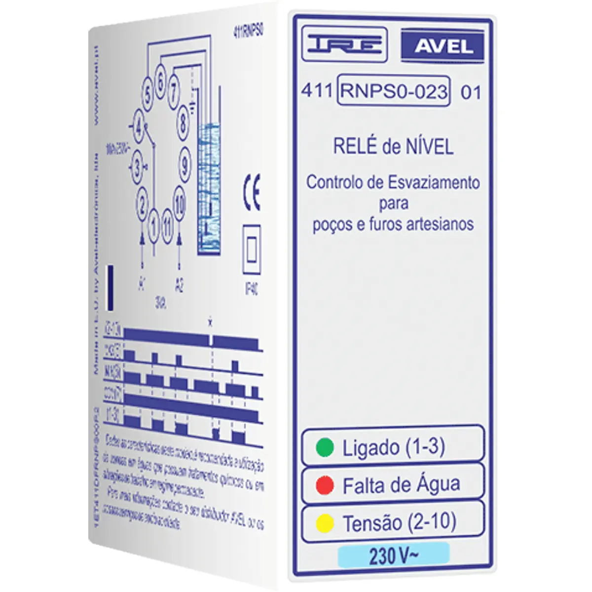 Relé de nível para controlo de esvaziamento de poço ou furo. Evita que uma eletrobomba fique a trabalhar "em seco", por ex. durante a rega de campos, diretamente de poços ou furos: