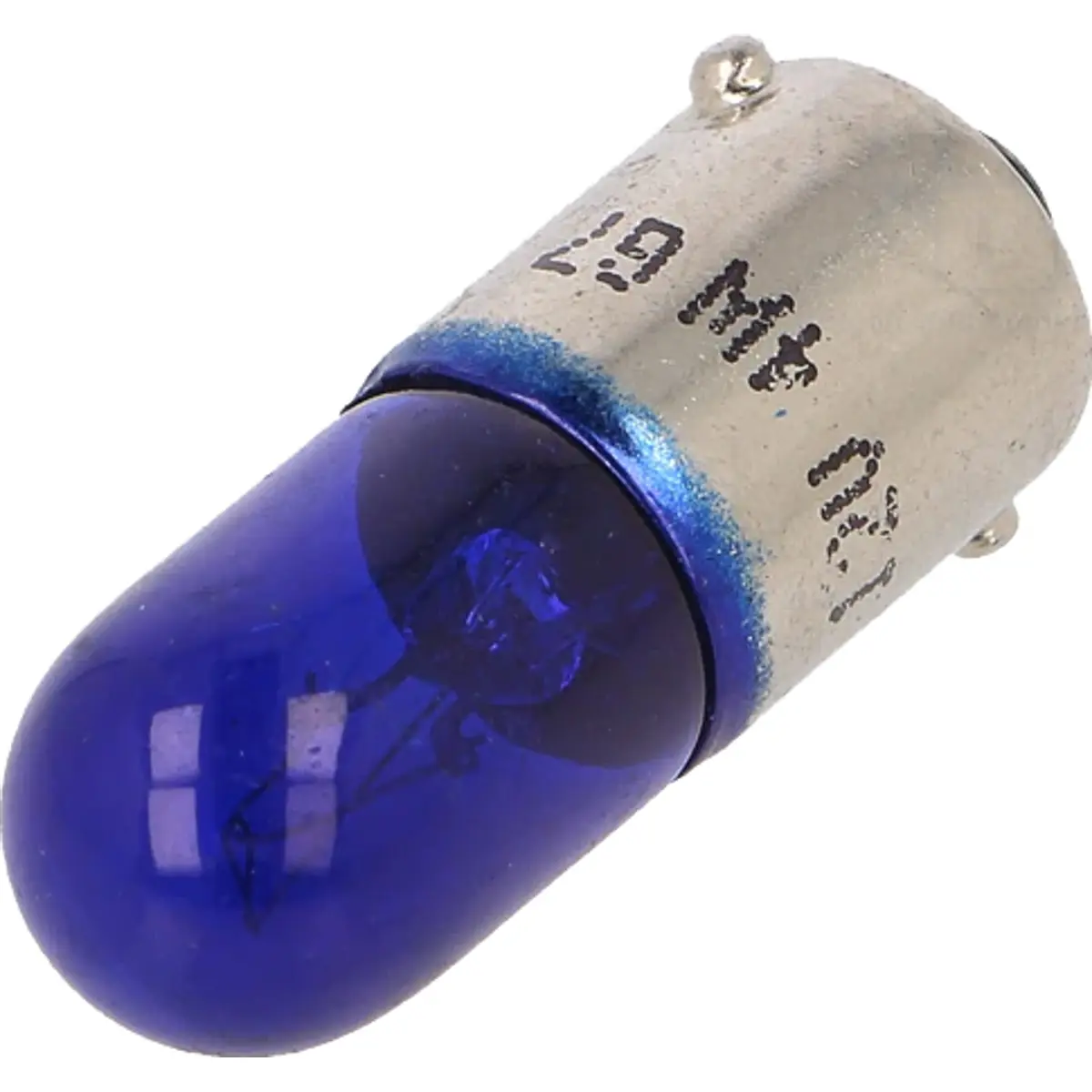 Lâmpada automóvel com casquilho BA9S e formato T4W, alimentada a 12V e com potência de 4W, na cor azul. Ideal para substituição de lâmpadas de interior ou de sinalização compatíveis com BA9S/T4W em veículos, oferecendo iluminação estável e eficiente. Compatível com sistemas elétricos de 12V, facilita a instalação e substituição rápida. Desempenha-se bem em aplicações automóveis que exigem tom de azul para indicar estado ou estilo do veículo.