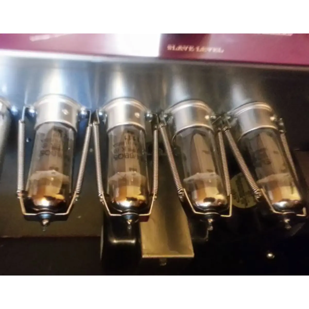 Este retentor de mola para válvulas evita que as válvulas saiam do suporte, independentemente da posição de instalação. Compatível com válvulas EL84, 6BQ5, 7189, 12BH7, ECL-86, ECL-82, entre outras. A mola tem cerca de 40 mm de comprimento e o conjunto total mede aproximadamente 65 mm, fornecendo fixação estável em aplicações de amplificadores e equipamentos áudio que utilizam válvulas de vácuo.