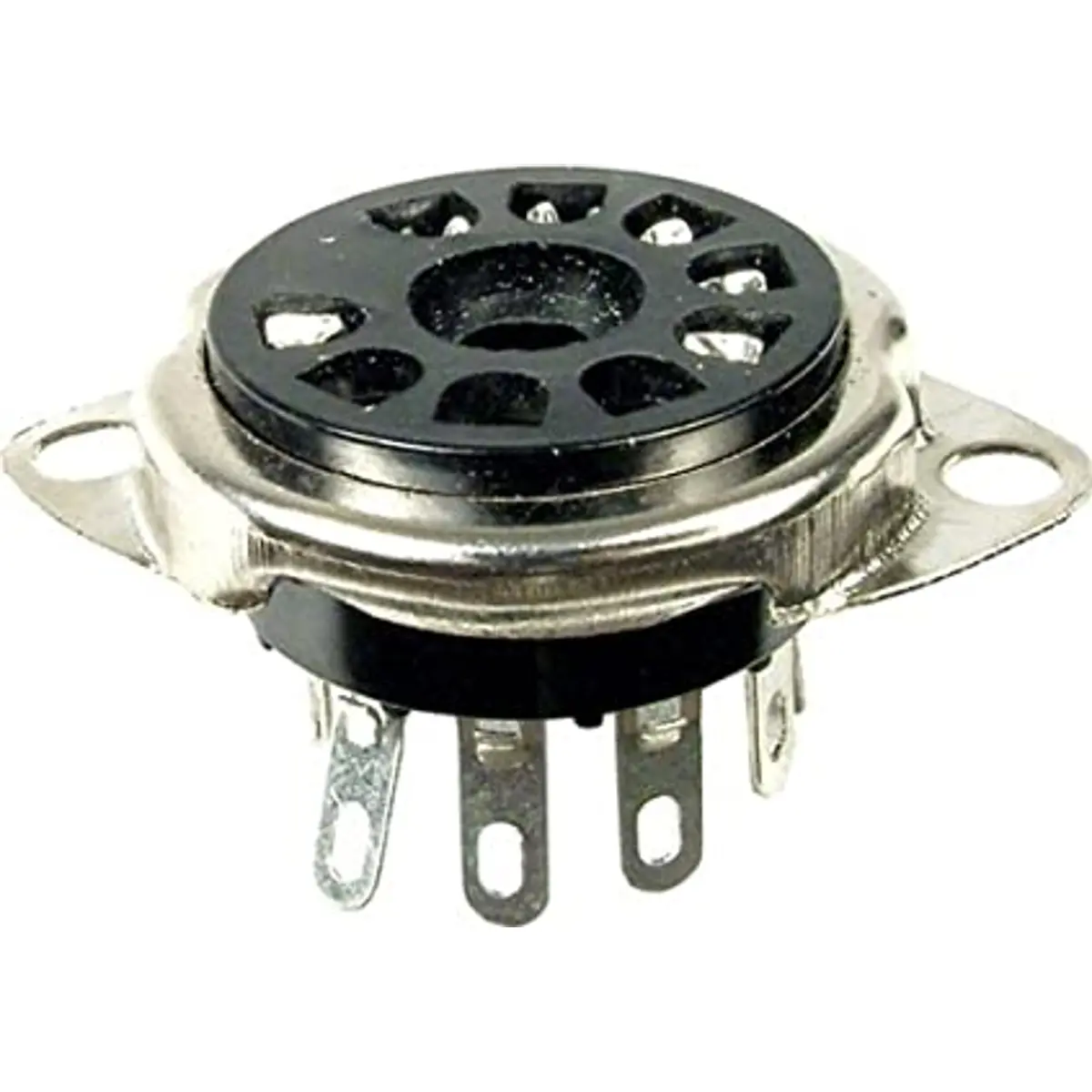 O suporte de válvula de chassi de 9 pinos (Noval) facilita a montagem em estruturas mecânicas, com diâmetro de montagem de 28mm e distância de furação de 19mm para alinhamento estável. Compatível com componentes de chassis e aplicações que exigem fixação precisa, proporcionando encaixe seguro e montagem rápida.