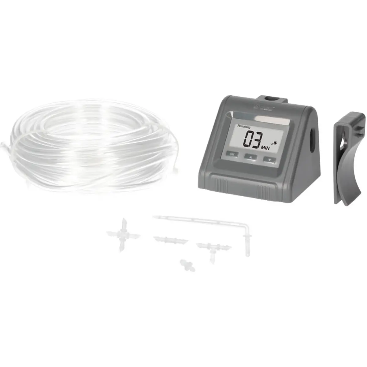 Permite regar gota-a-gota a partir de um recipiente com água, sem necessidade de estar ligado à torneira.