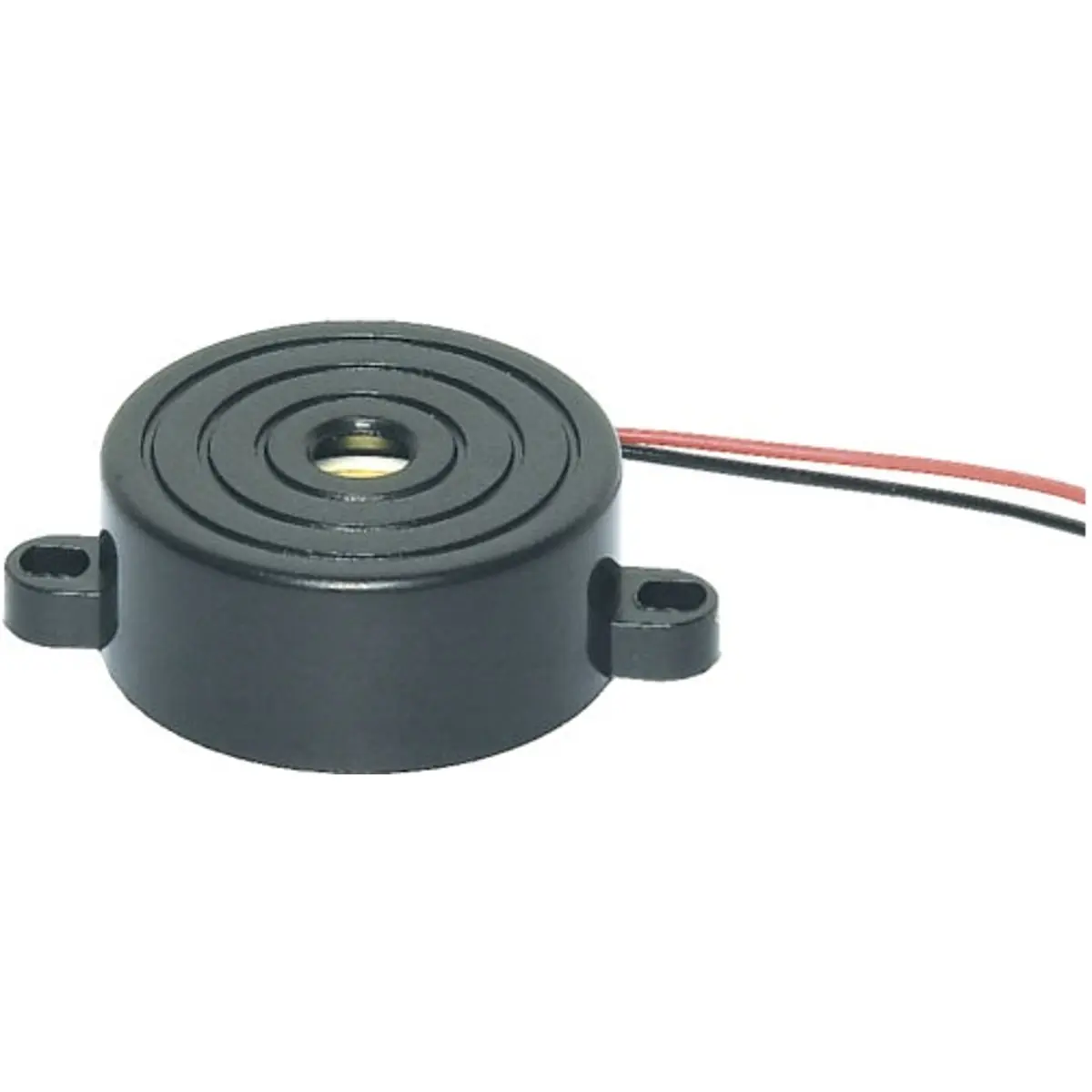 O transdutor piezo com gerador de tons oferece uma solução de sinalização acústica compacta, alimentada a 12 V DC, com consumo de 8 mA, resposta em frequência de 3 kHz e nível sonoro de 80 dB a 0,3 m. Com dimensões Ø22,7 x 12,2 mm e entrefuros de 29,8 mm, funciona entre -20 °C e 60 °C, adequado para aplicações que requerem emissão de tons em sistemas de alarme ou avisos sonoros.