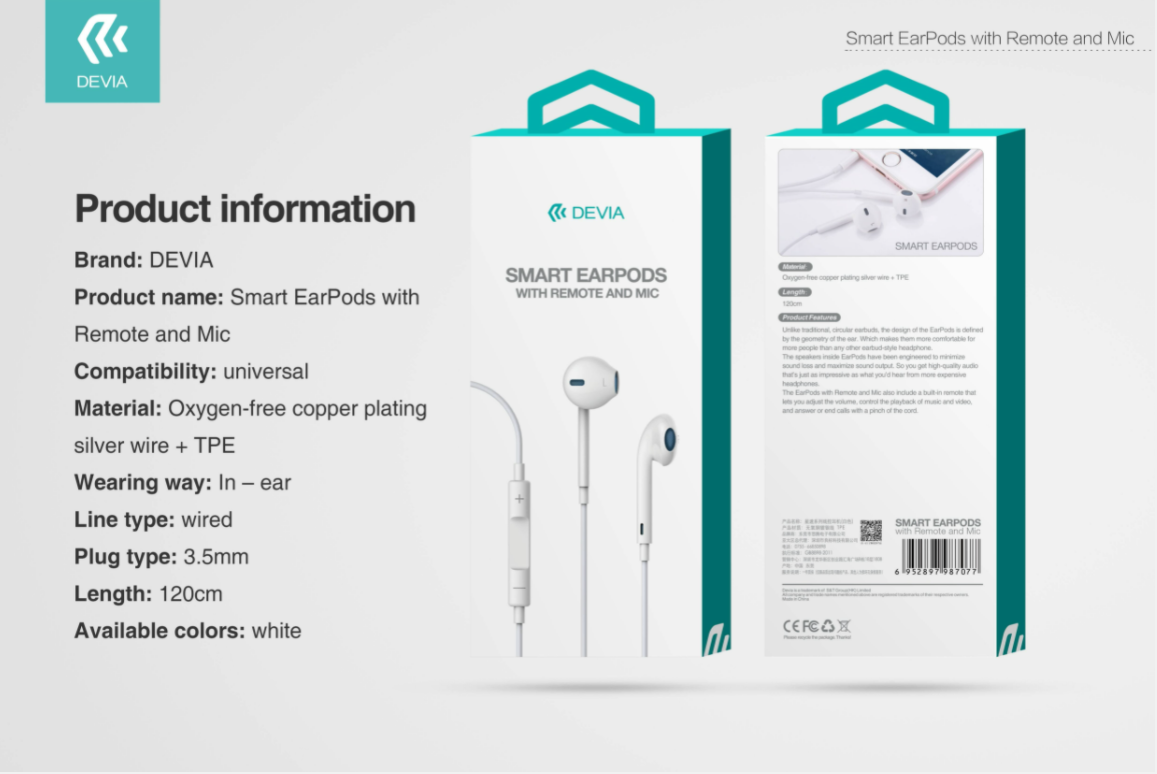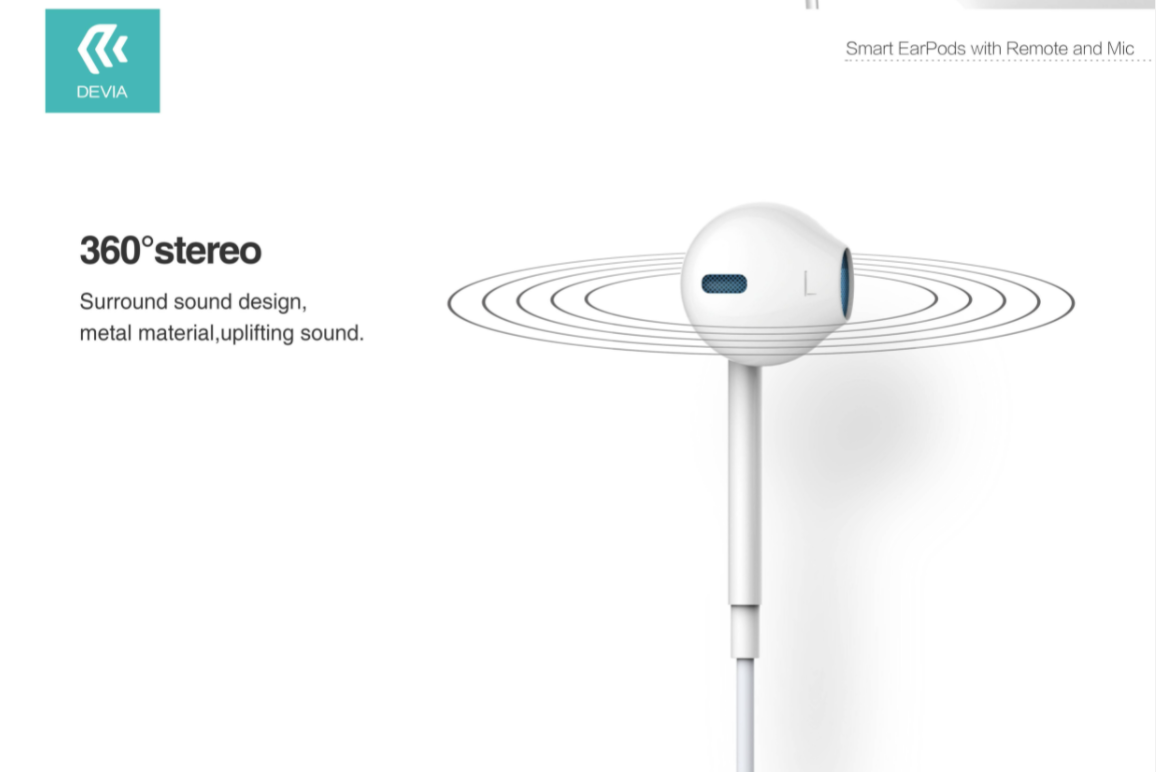 Devia Smart - Auriculares earbuds com microfone Jack 3.5mm - branco