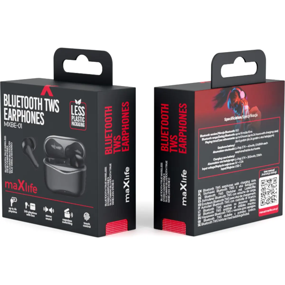 MXBE-01 TWS Maxlife são auriculares de ouvido sem fio que proporcionam total conforto auditivo. Os fones de ouvido conectam-se via Bluetooth 5.1. A excelente qualidade de som e um fluxo de sinal de áudio estável e ininterrupto permitem que ouça ou fale livremente.