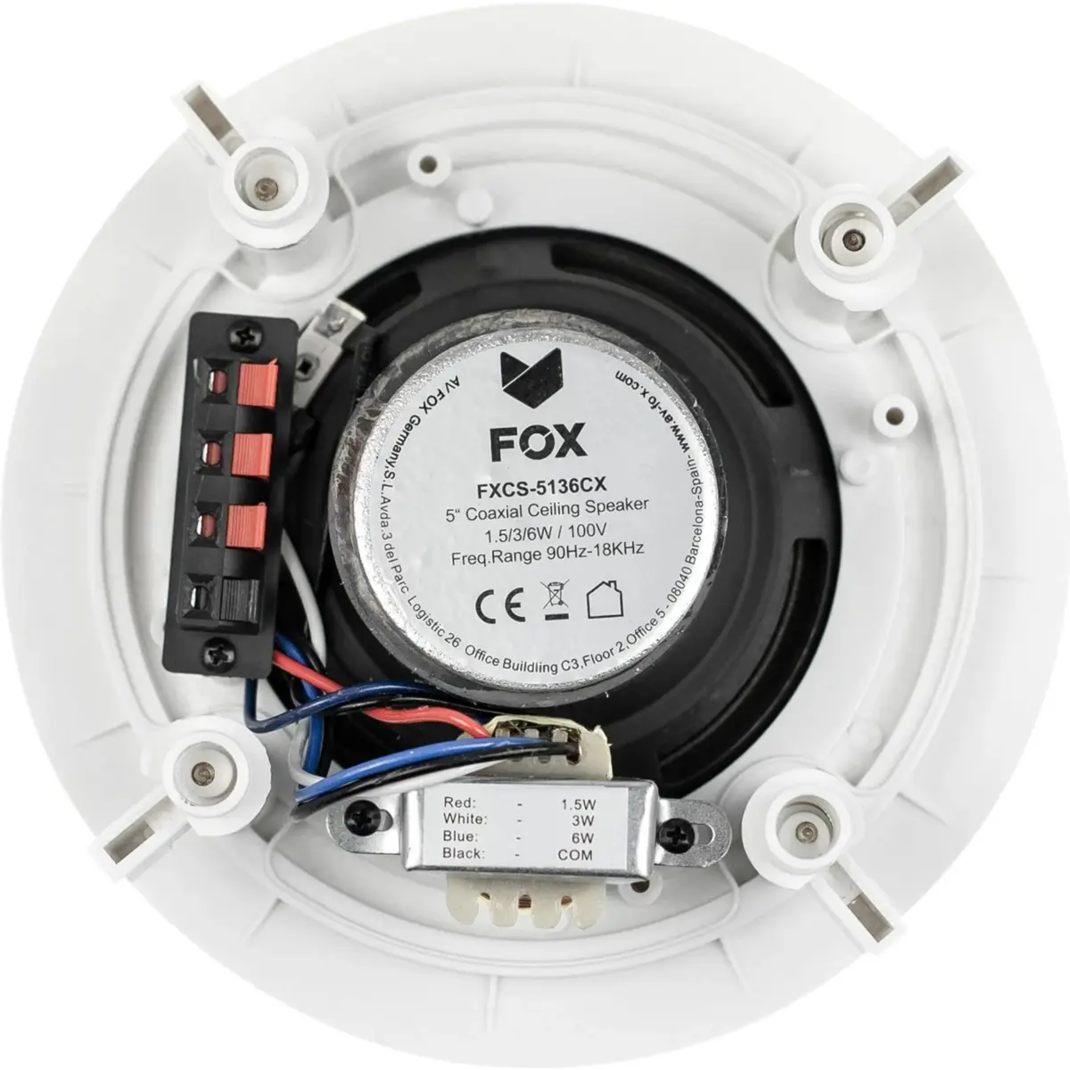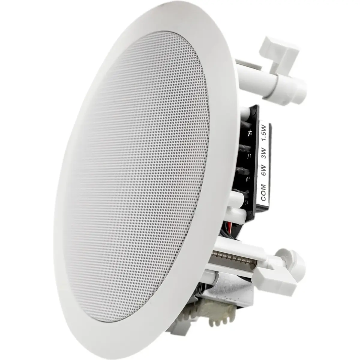 Altifalante coaxial de teto com 3 níveis de potência (1.5/3/6W) para sistemas de 100V. Concebido para reprodução de música de fundo, Home Audio, Bar/ Lounge, Cafés, Sala de reuniões, etc.