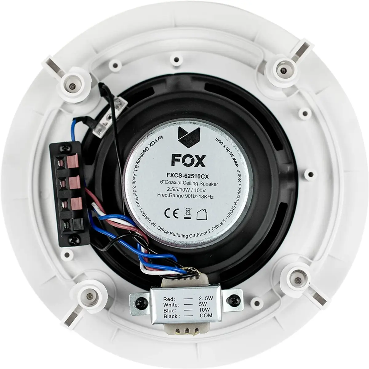 Altifalante coaxial de teto com 3 níveis de potência (2.5/5/10W) para sistemas de 100V. Concebido para reprodução de música de fundo, Home Audio, Bar/ Lounge, Cafés, Sala de reuniões, etc.