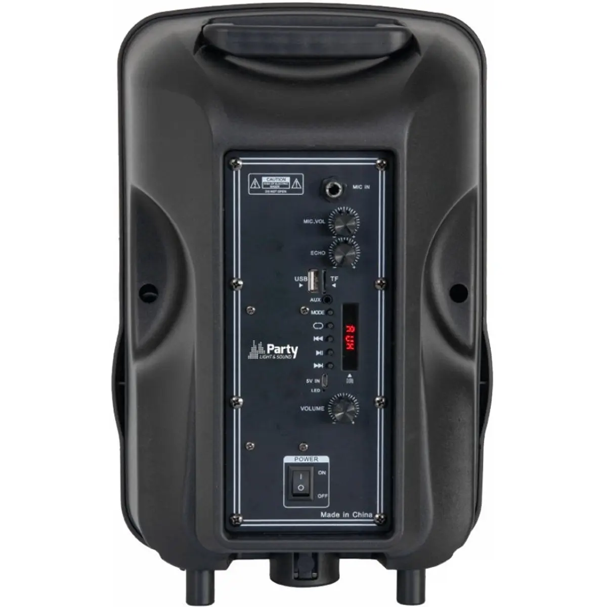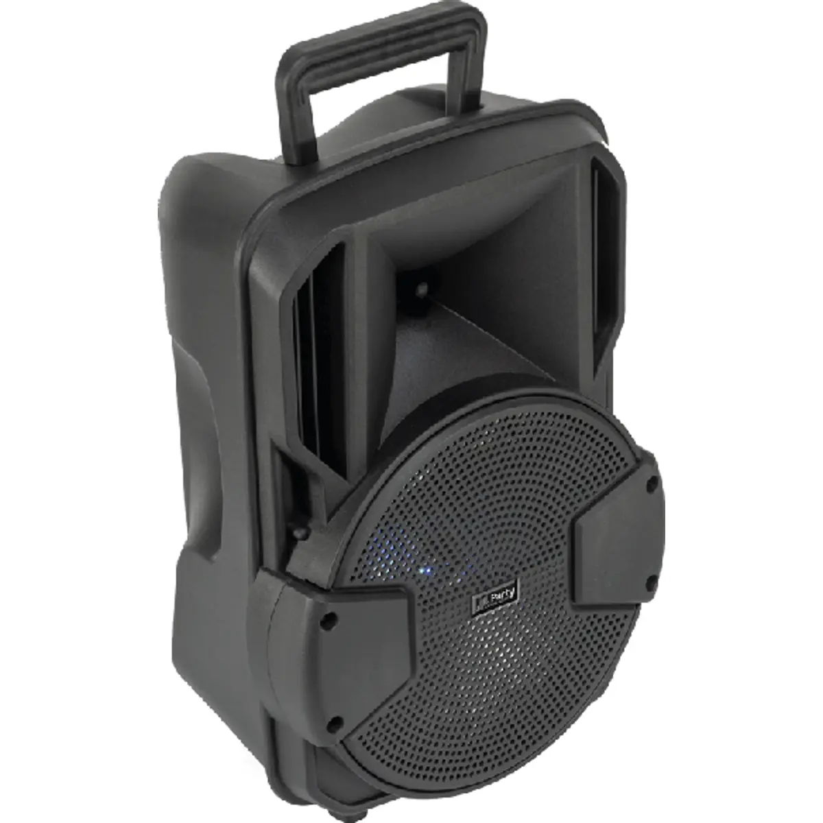 Coluna Amplificada de tamanho compacto, portátil e autónoma (com bateria), pelo que pode ser instalada rapidamente, onde quiser.