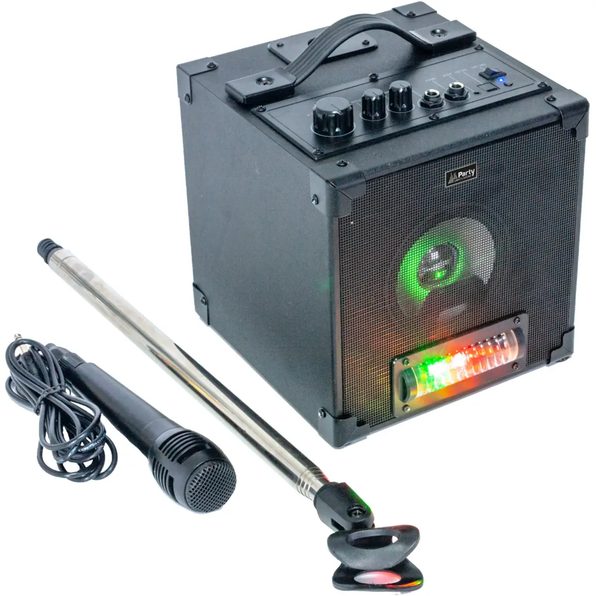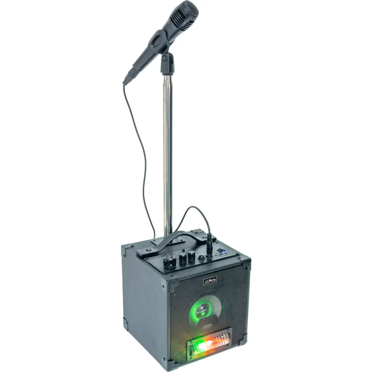 Coluna amplificada, alimentada por bateria, especificamente concebida para karaoke.