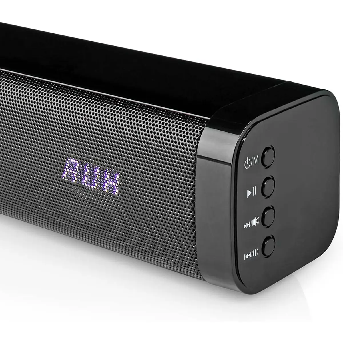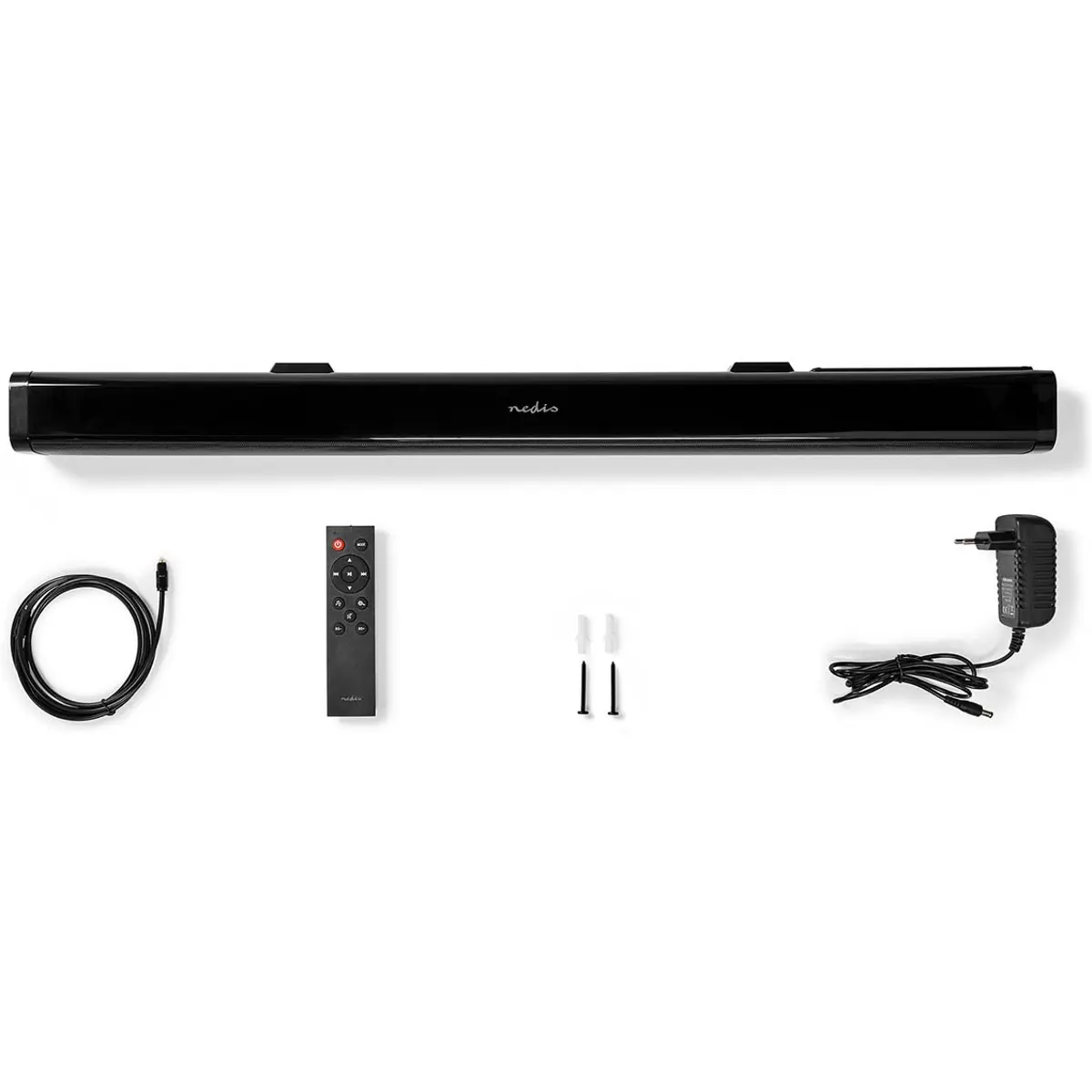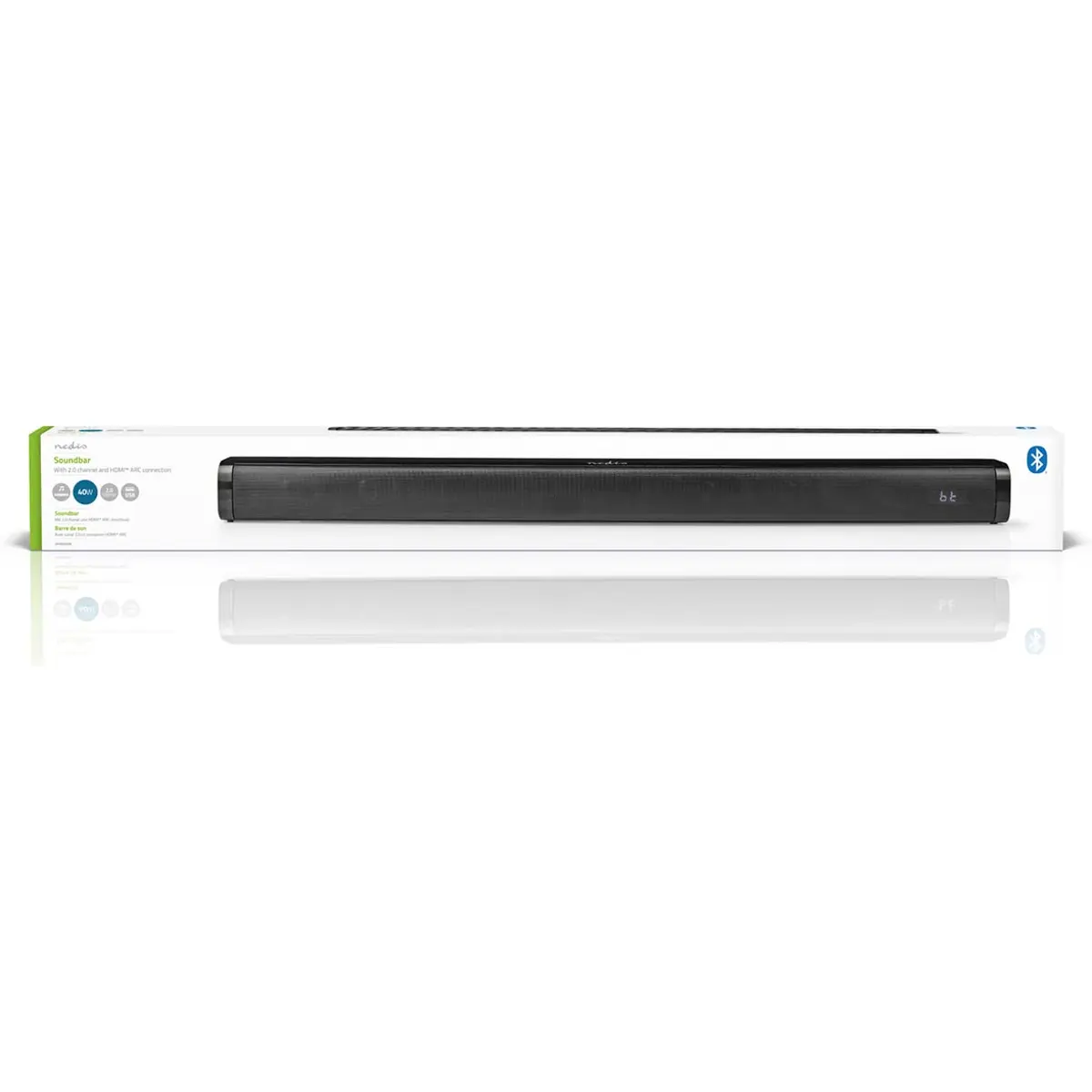 Esta soundbar Bluetooth® Nedis de 40 W permite que desfrute dos seus programas de TV, filmes e jogos favoritos com uma qualidade de som aprimorada proporcionada por esta barra de som de 2 canais. Oferece um som mais claro e impactante em comparação com o som normal da TV. O design de perfil fino, com uma largura de 78 cm, encaixa-se em qualquer lugar da casa, seja na sala de estar, quarto ou escritório.