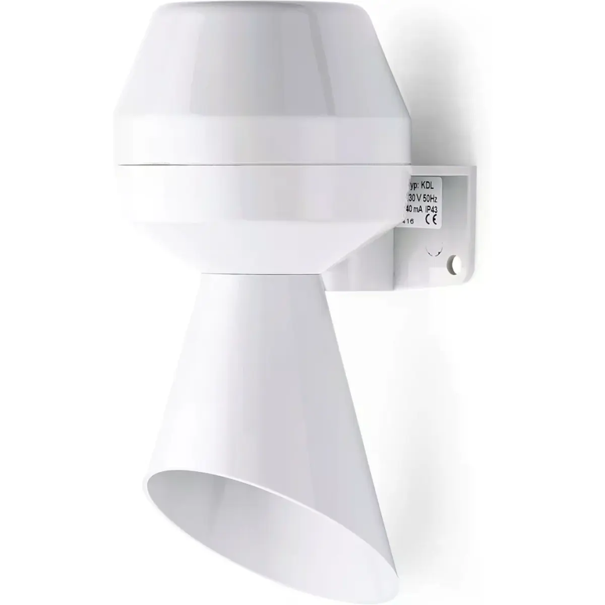 Sirene dinâmica ABS alimentada a 48V AC com emissão sonora de 88dB, classe de proteção IP43 e forma de sinalização buzzer. Construída em ABS, dimensões Ø75x152mm, conectada por grampos de torção. Ampla faixa de temperatura de funcionamento de -20°C a 50°C, adequada para sinalização de alarme em ambiente industrial.