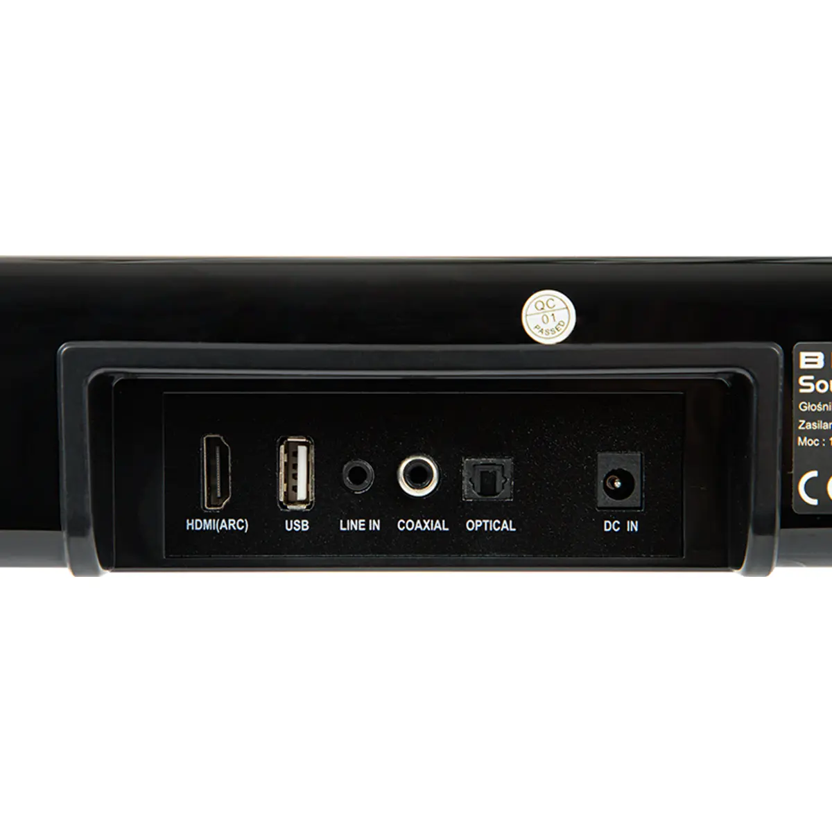 - Ligações: óptica, HDMI (ARC), USB, coaxial e AUX