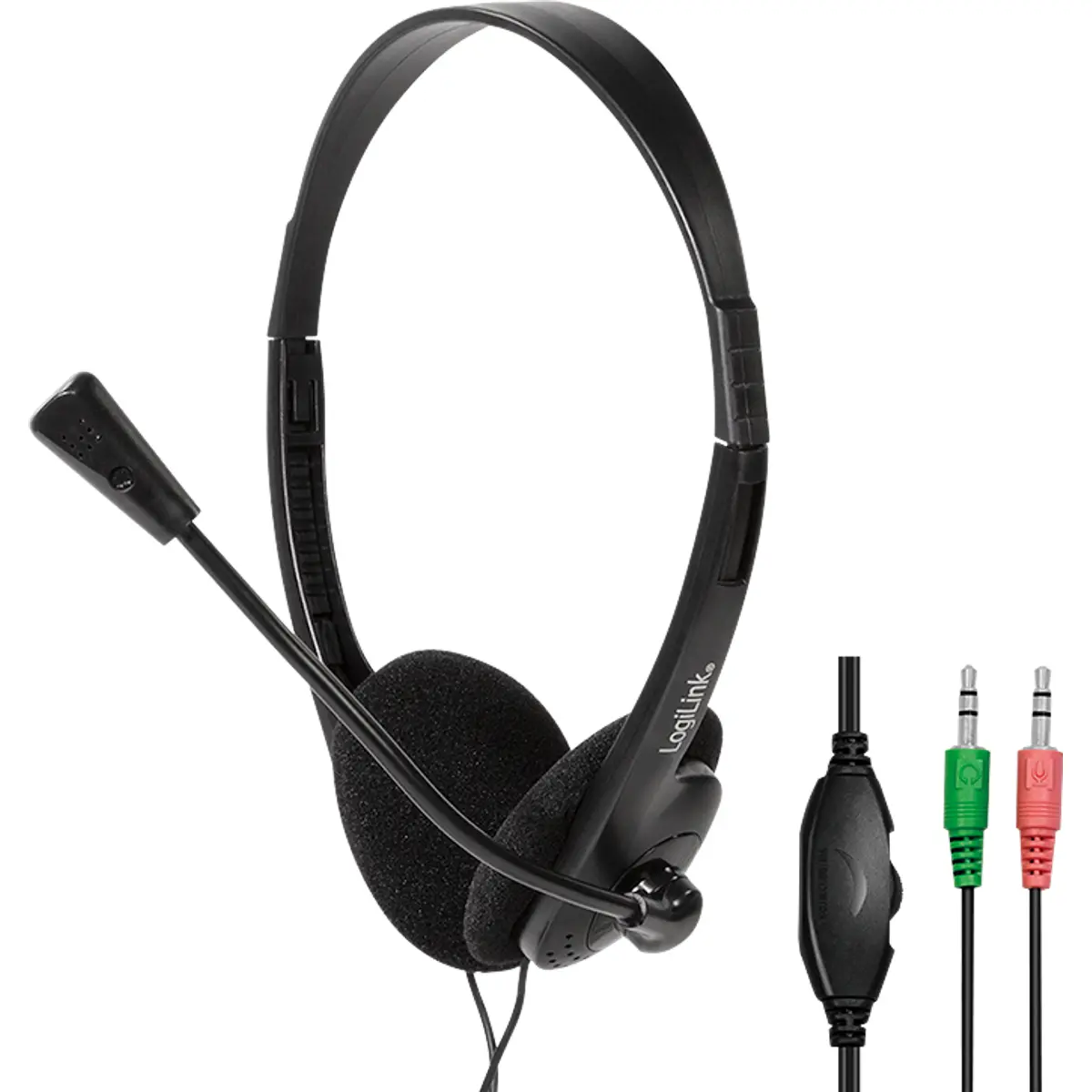 Logilink HS0052 - Auscultador headset stereo c/ microfone + controlo volume - 2x Jack3.5mm