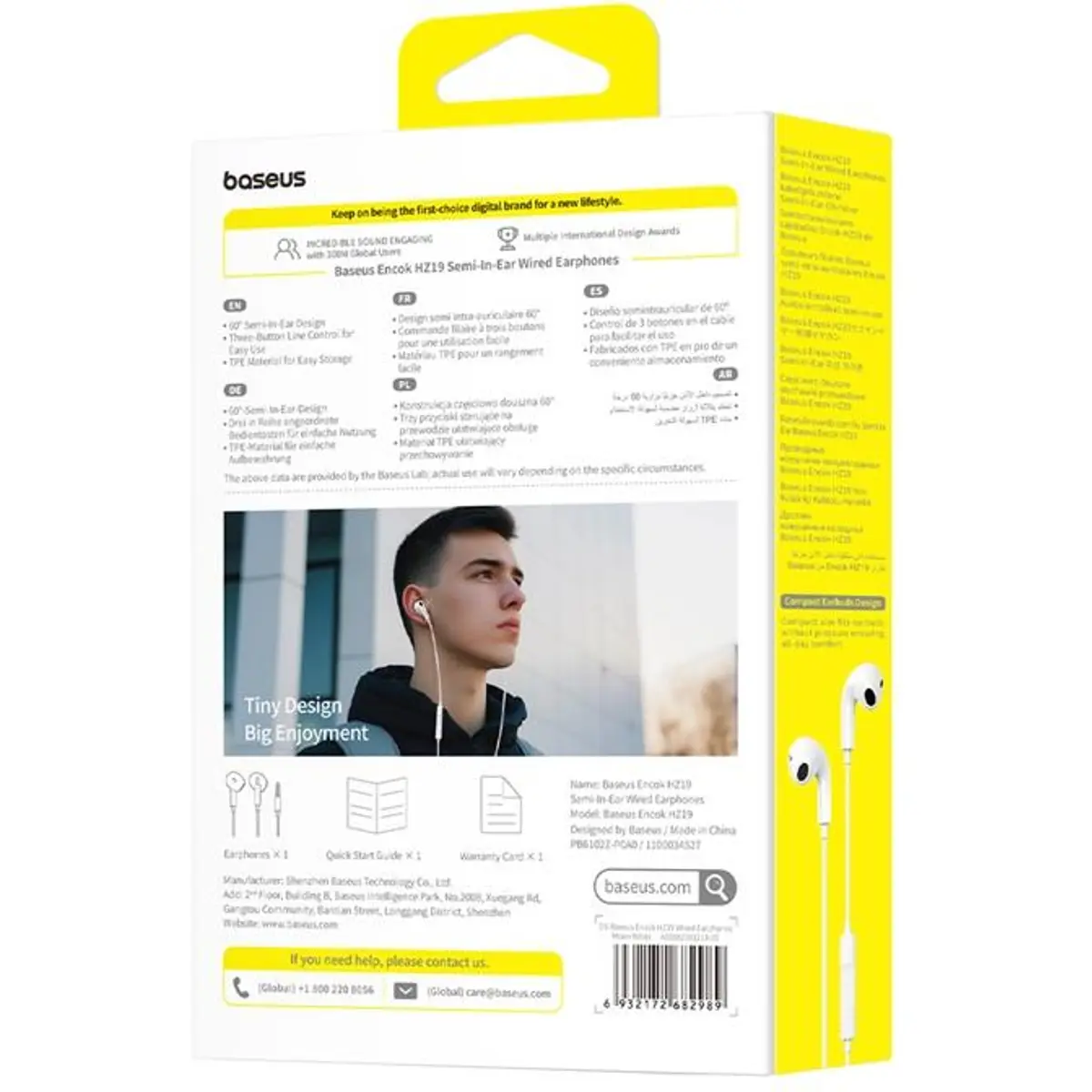 Liberte o poder do som com os auriculares com fios semi-in-ear Baseus Encok HZ19. Com apenas 10,7 g, estes auriculares foram desenhados com um ângulo ergonómico de 60° para um ajuste seguro e sem pressão, garantindo conforto mesmo durante longos períodos de utilização.
