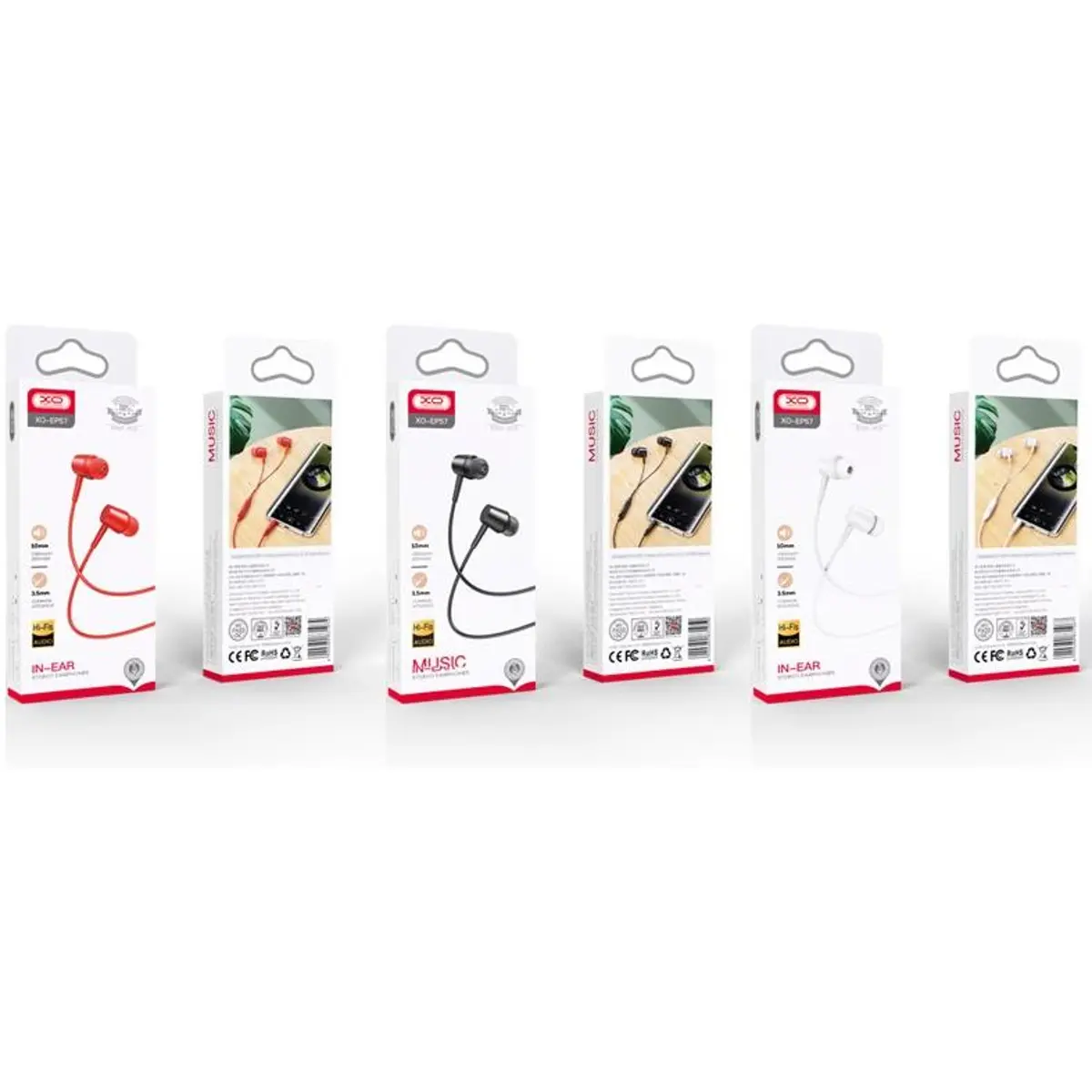 Os XO EP57 são auscultadores intra-auriculares com fios para dispositivos equipados com uma entrada jack de 3,5 mm. São universais e compatíveis com vários dispositivos, tais como: smartphones, leitores mp3/mp4, televisores, entre outros. O cabo, fabricado em silicone flexível, garante uma durabilidade prolongada.