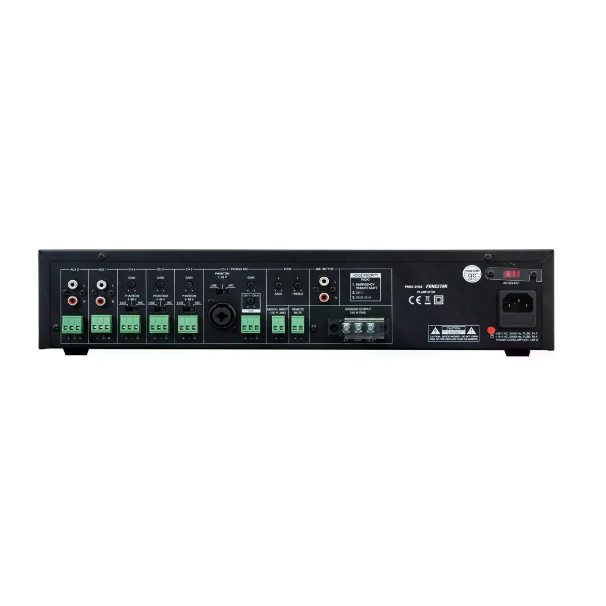 Ideal para sistemas de megafonia e música ambiente, suportando colunas de linha de 100 V ou baixa impedância. Aplicações em espaços comerciais, centros educativos, monumentos, exposições, bares, restaurantes, entre outros.