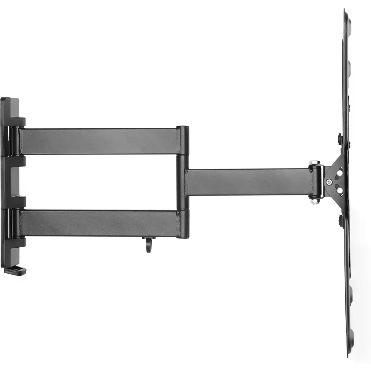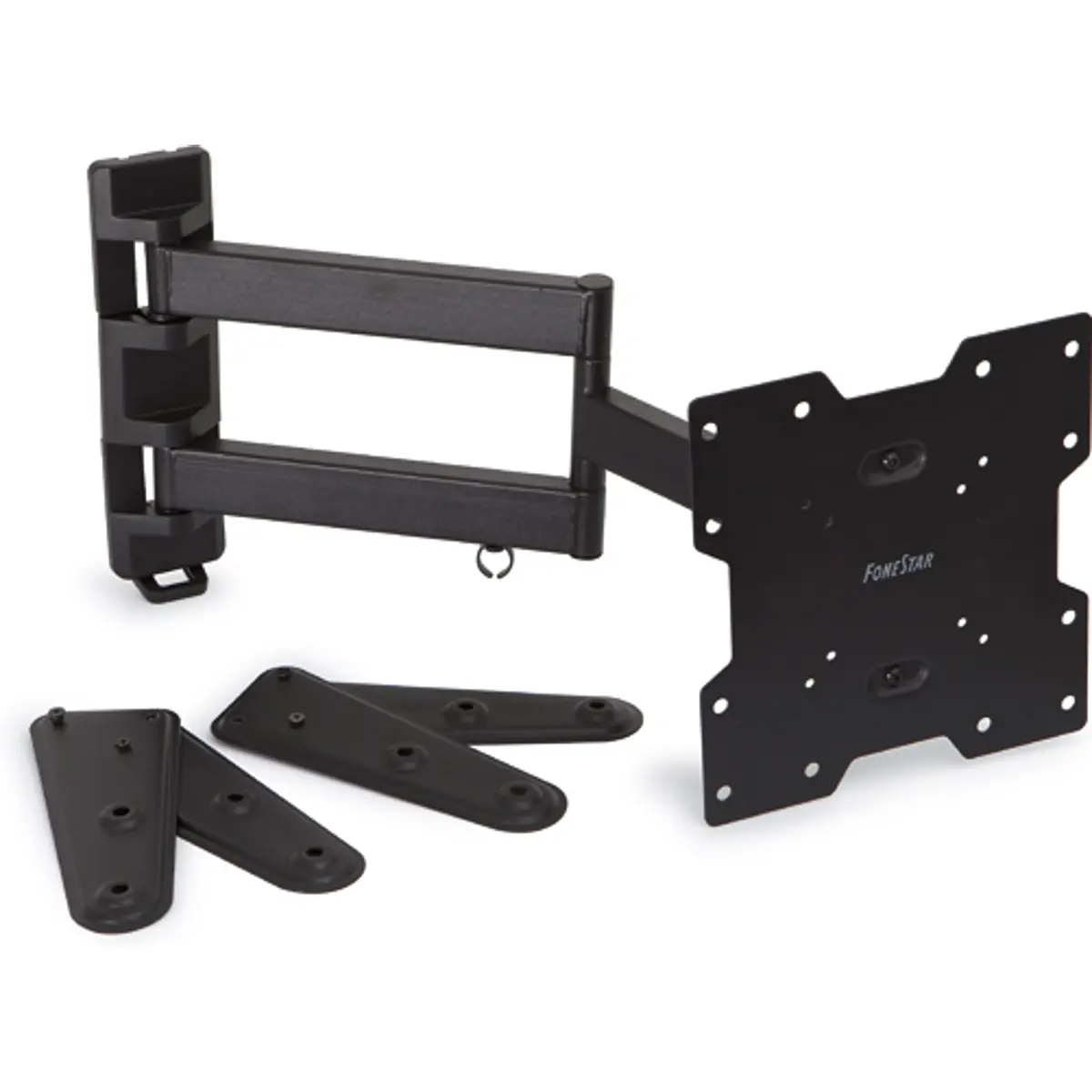 - Medidas: a distância da parede é regulável entre 5,6 cm e 51 cm. A placa de parede apresenta dimensões de 6,5 x 26 cm, enquanto a placa para a televisão mede 22,2 x 23,6 cm.