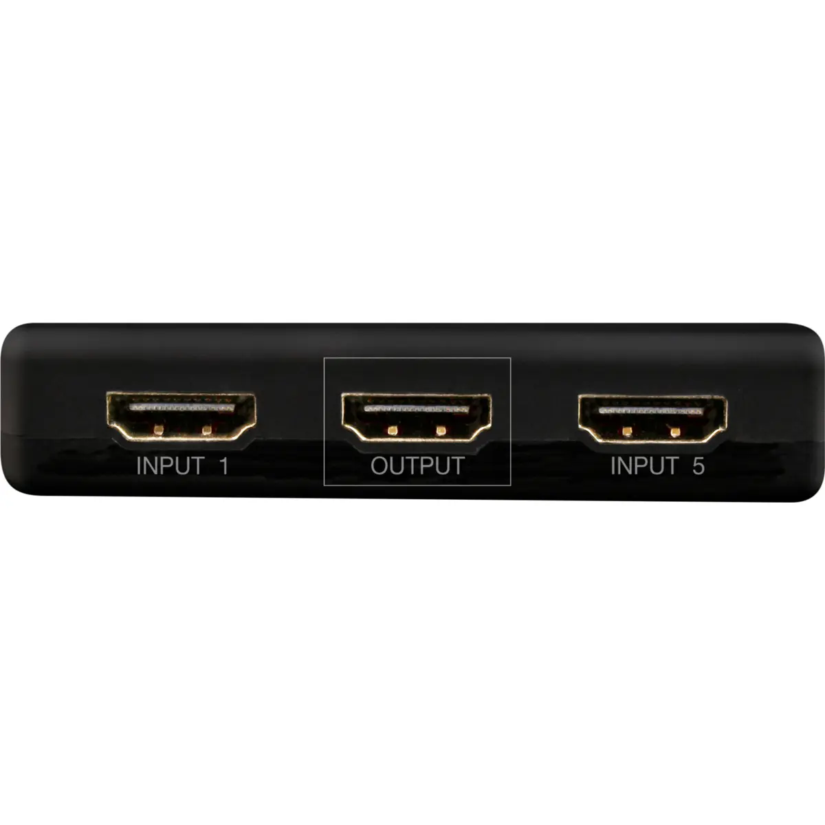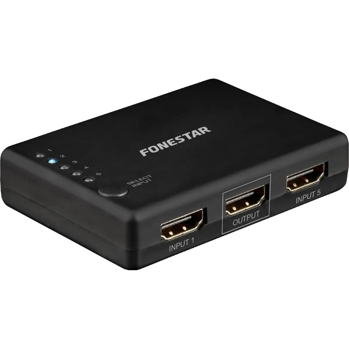 Permite ligar 5 dispositivos HDMI em simultâneo e selecionar visualizar um ou outro usando o botão de seleção ou o comando à distância. Dispõe de comutação automática inteligente que é ativada ao detetar um novo dispositivo.