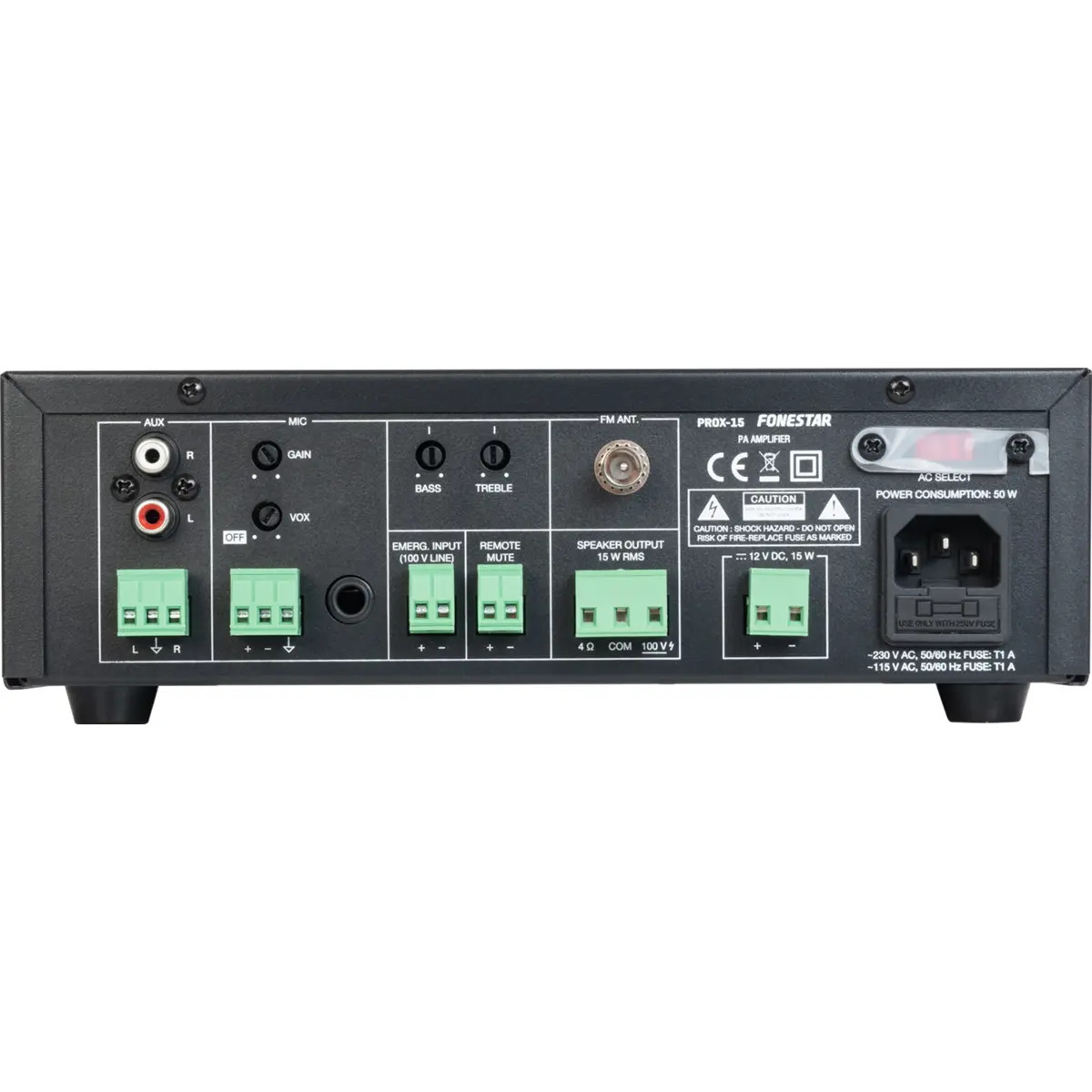 Sistemas de megafonia e fio musical com altifalantes de linha de 100 V ou baixa impedância. Espaços comerciais, centros educativos, veículos com megafonia, monumentos, exposições, bares, restaurantes, etc.