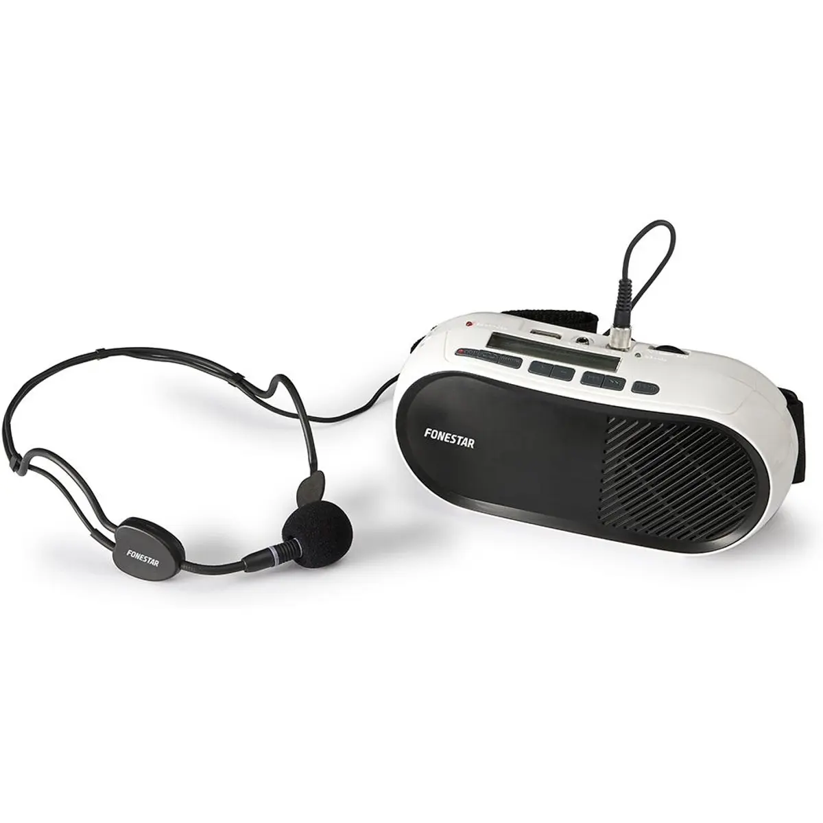 Sistema de amplificação pessoal para cintura com microfone de cabeça mãos-livres. Especialmente indicados para apresentações, guias turísticos, actividades desportivas, professores, etc.