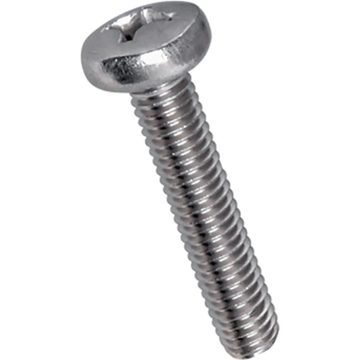 Parafuso de inox M2x20mm com cabeça de queijo e chave Phillips PH1, fabricado em aço inoxidável A2. Possui rosca M2, comprimento 20 mm, cabeça com altura de 1,72 mm e diâmetro de 4 mm. Conforme as normas DIN 7985A, BN 660, ISO 7045 e PN 82202, este elemento oferece resistência à corrosão e fiabilidade para montagem em metal ou plásticos. Adequado para aplicações que exigem fixação precisa, sem componentes visíveis adicionais, com fácil substituição.