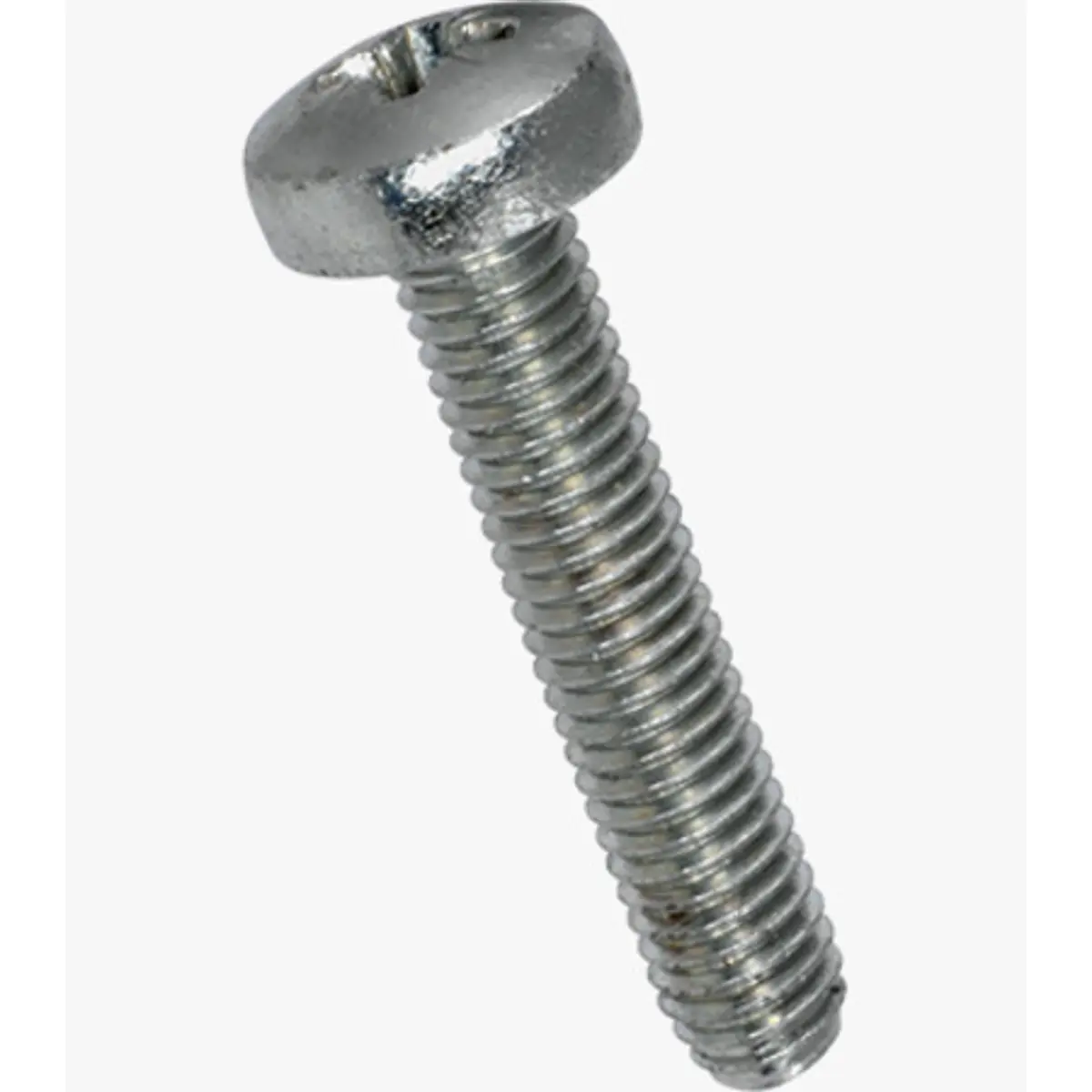 Parafuso de aço temperado com cabeça cilíndrica e rosca de 2,5 para metal; acabamento em zinco. Este parafuso apresenta diâmetro de cabeça 5mm, altura da cabeça 2.12mm e dureza entre 450 e 560 HV, oferecendo elevada resistência mecânica. O acionamento é Pozidriv PZ1, compatível com as normas BN 2724 e DIN 7500C, e dispõe de rosca autoregulada para montagem estável. Ideal para montagem de componentes metálicos em aplicações industriais, garantindo retenção eficaz e proteção anticorrosiva.
