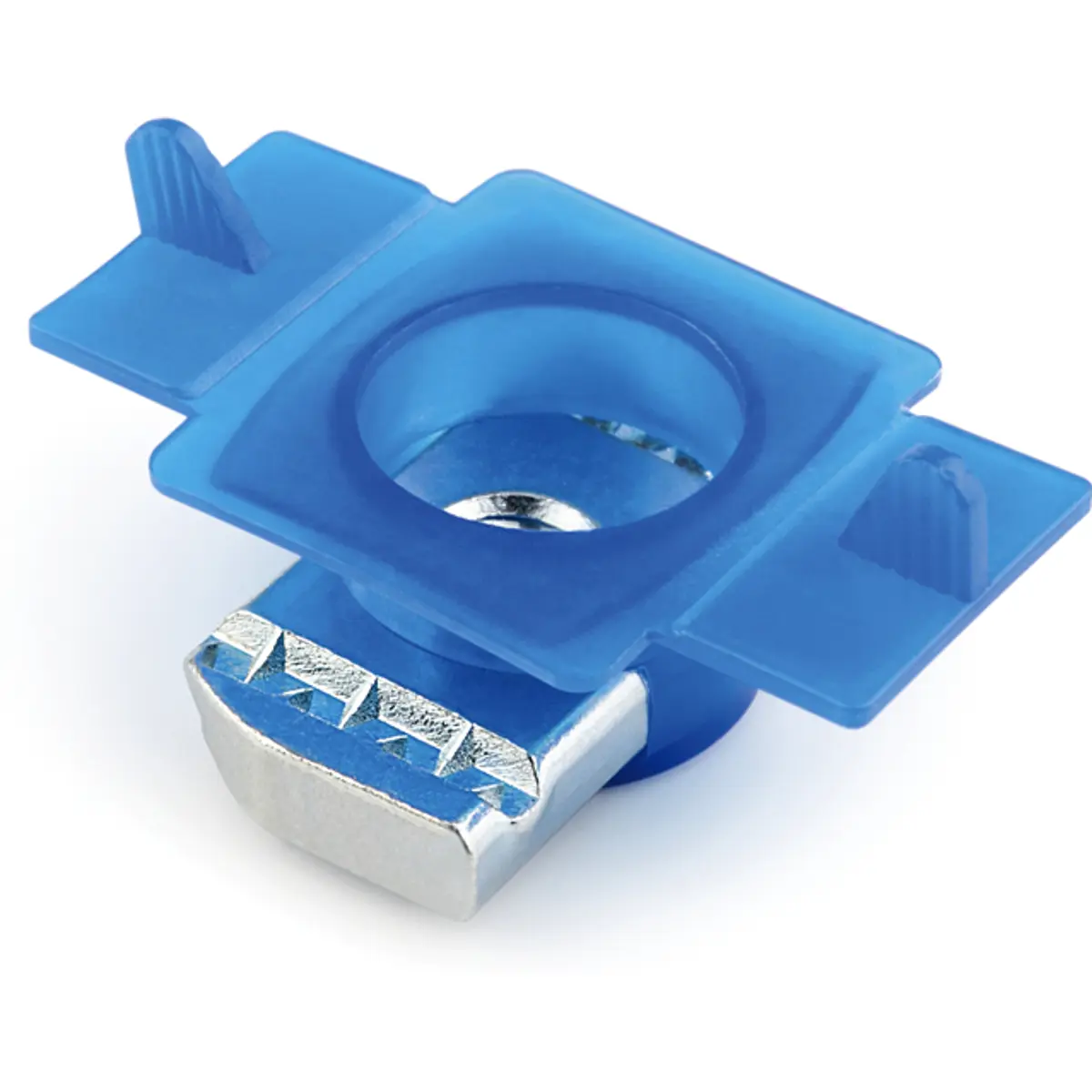 - Porca de fixação rápida com asas de plástico para fixação de elementos em perfis de alumínio e guias perfuradas de aço com canal compatível com acessórios INDEXTRUT.
