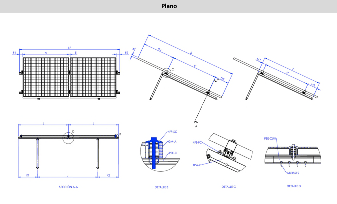 - Opções de fixação direta à subestrutura de cobertura ou fixação montada sobre estrutura auxiliar, consultar especificações na ficha técnica do sistema de montagem ST-PSC.