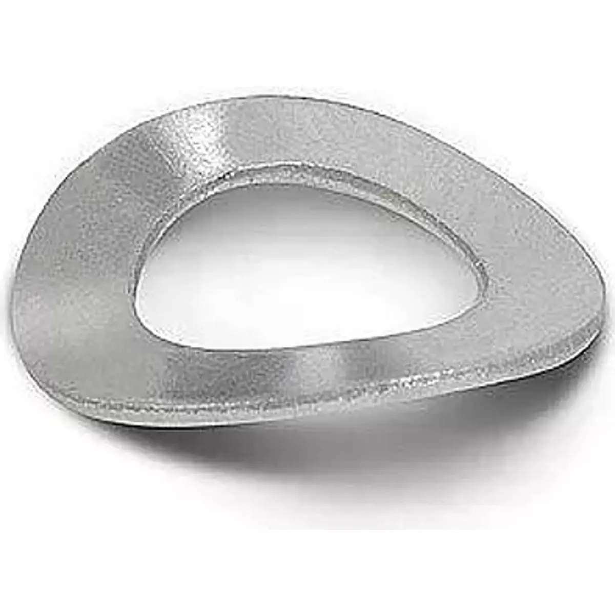 Anilha de mola curvada em aço inoxidável A2 para roscas M5. Possui diâmetro interior de 5,3 mm, diâmetro exterior de 10 mm, e espessura de 0,9 mm. Fabricada de acordo com DIN 137A, BN 677 e PN 82037, assegurando uma fixação estável e conformidade com normas para ligações com rosca M5.