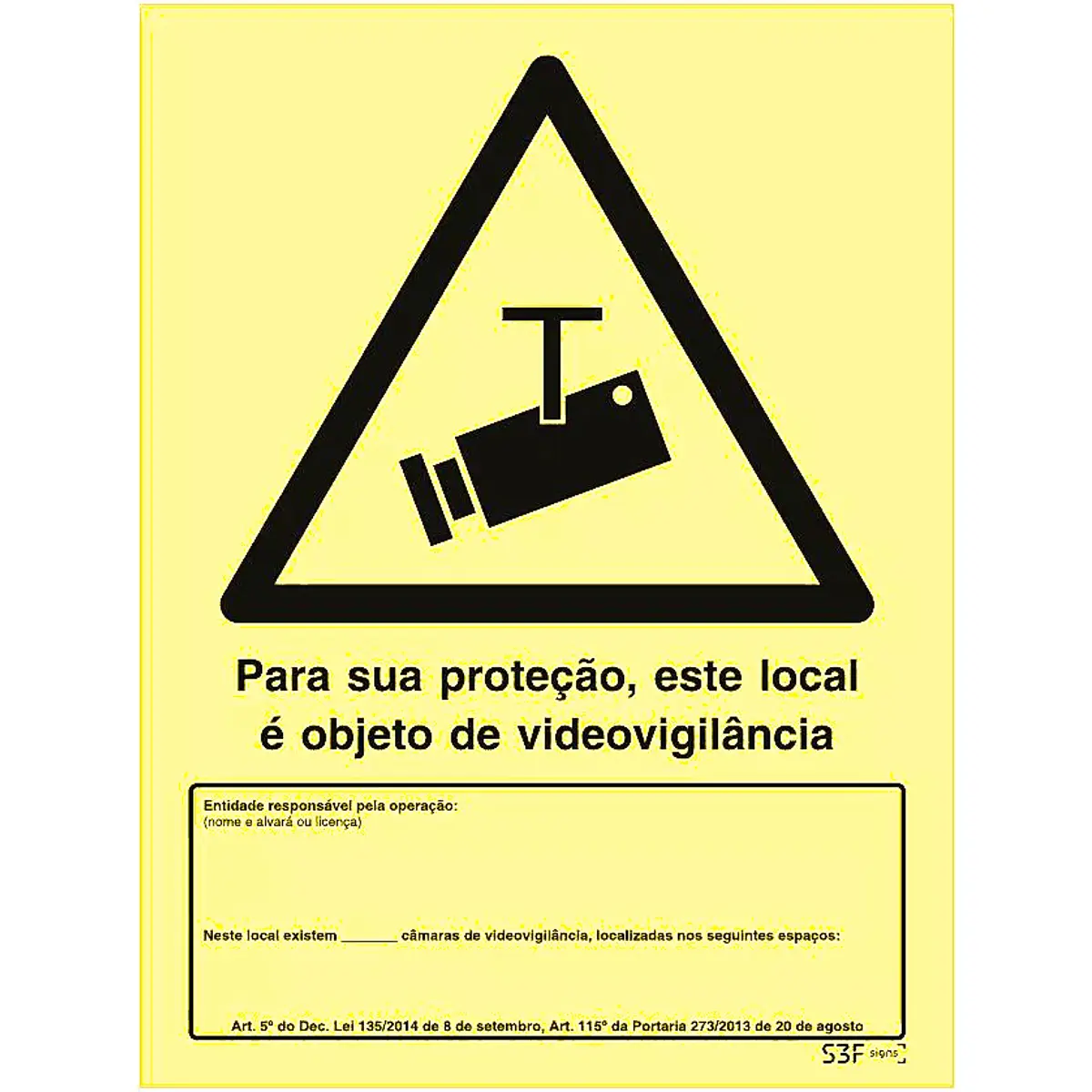 Placa de sinalização fotoluminescente p/ videovigilância (c/ nº de câmaras) - 200x300mm