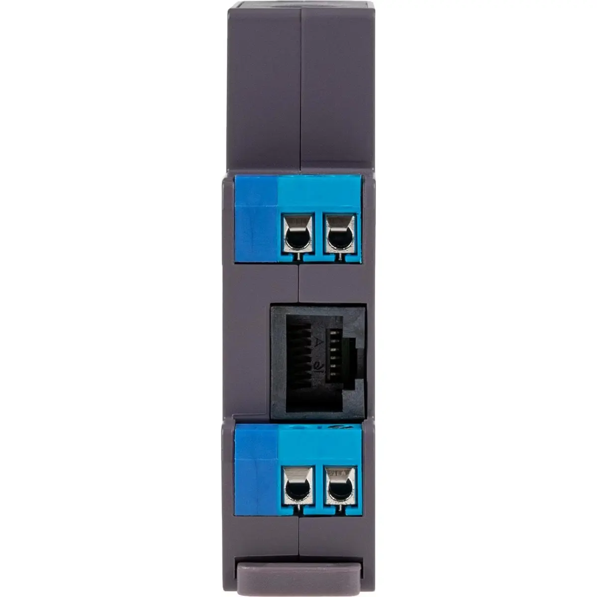 Relé profissional de 2 canais de 16A (max. total 25A) com conectividade Wi-Fi, LAN e Bluetooth, adequado para automação residencial e instalações controladas remotamente.