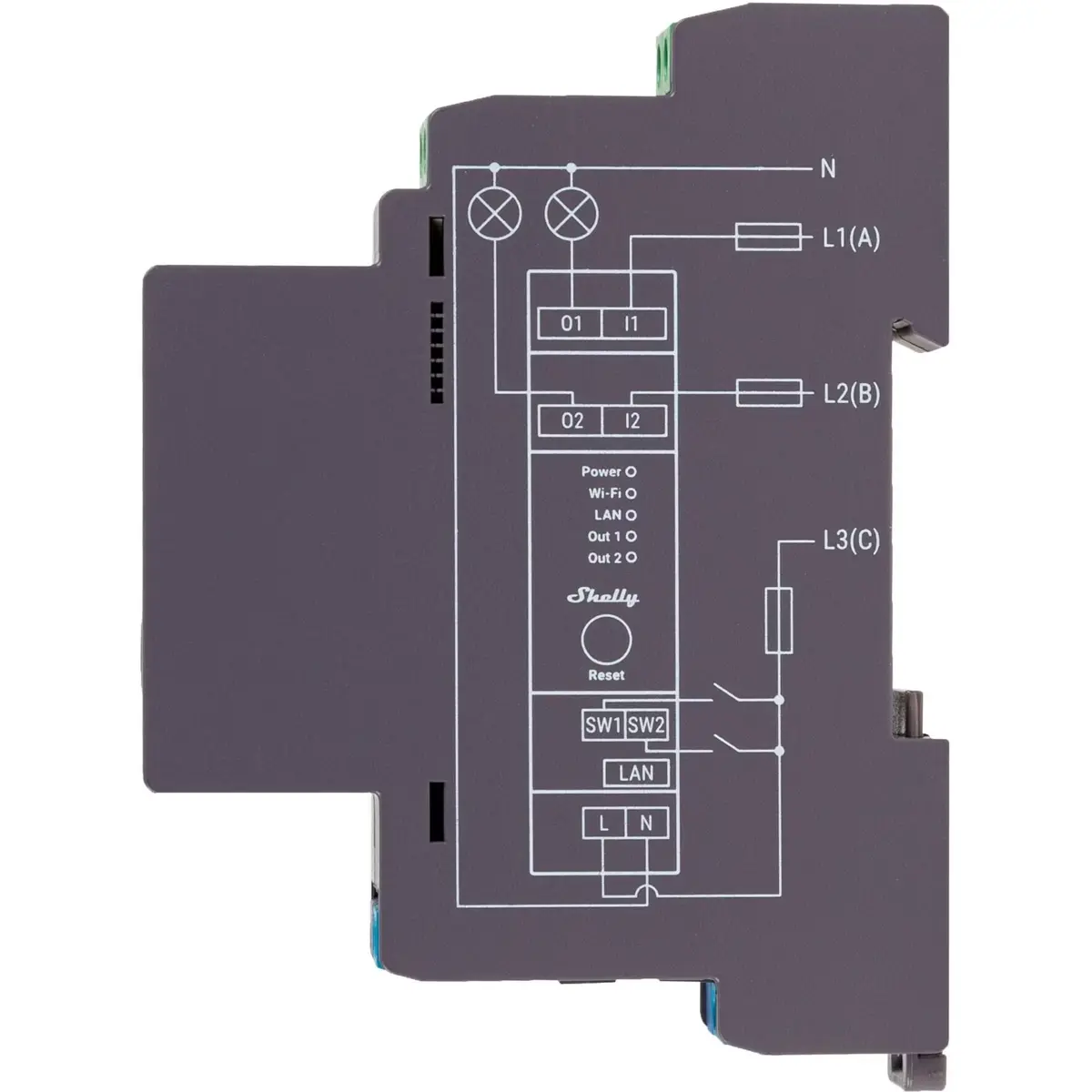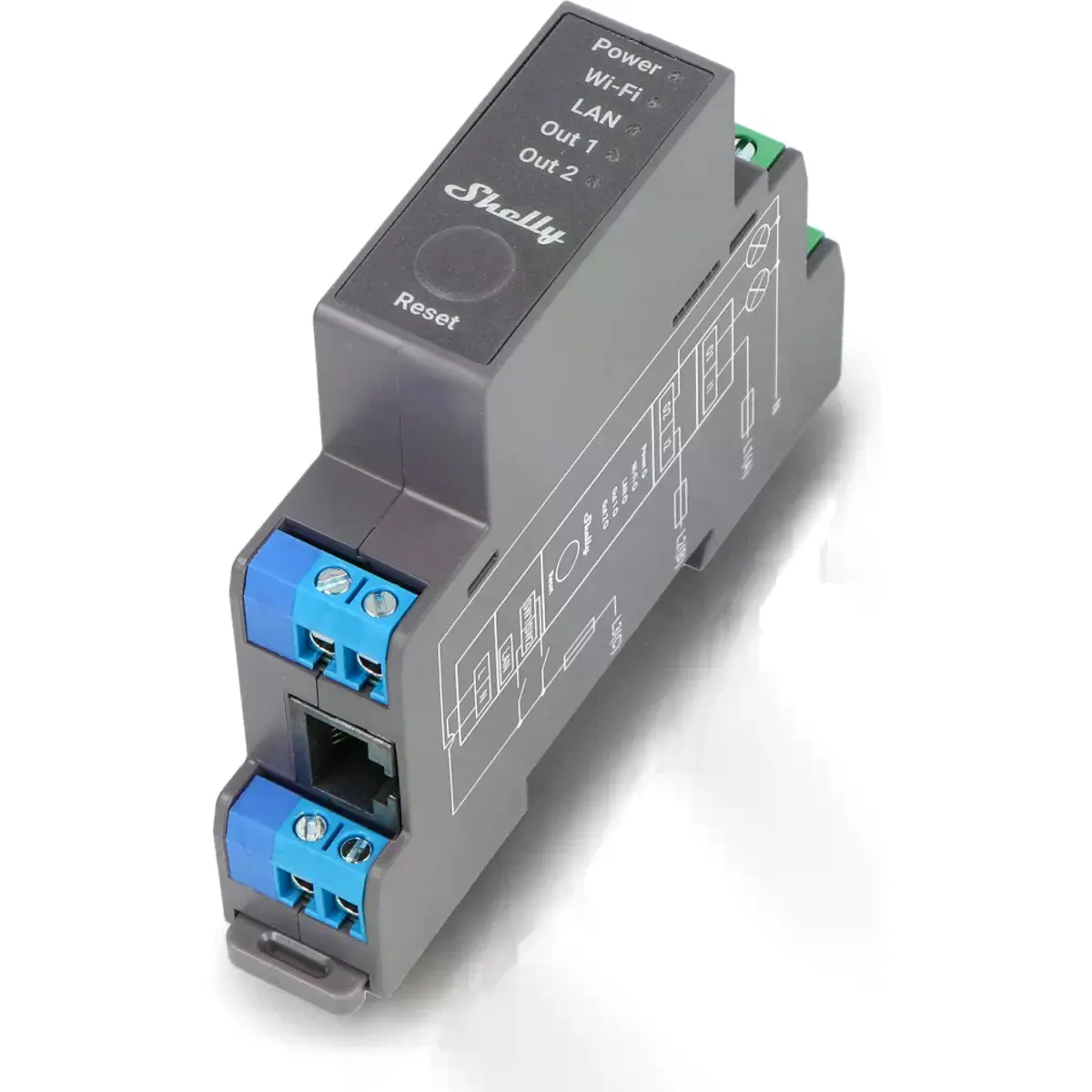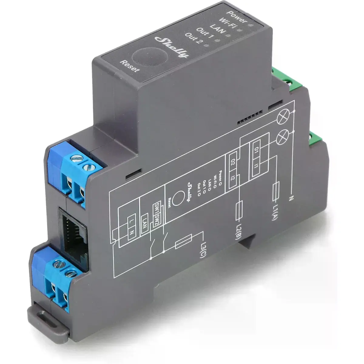 Shelly PRO 2 - Módulo para calha DIN c/ 2 relés para automação WiFi/BT/LAN - 110/240VAC 2x16A