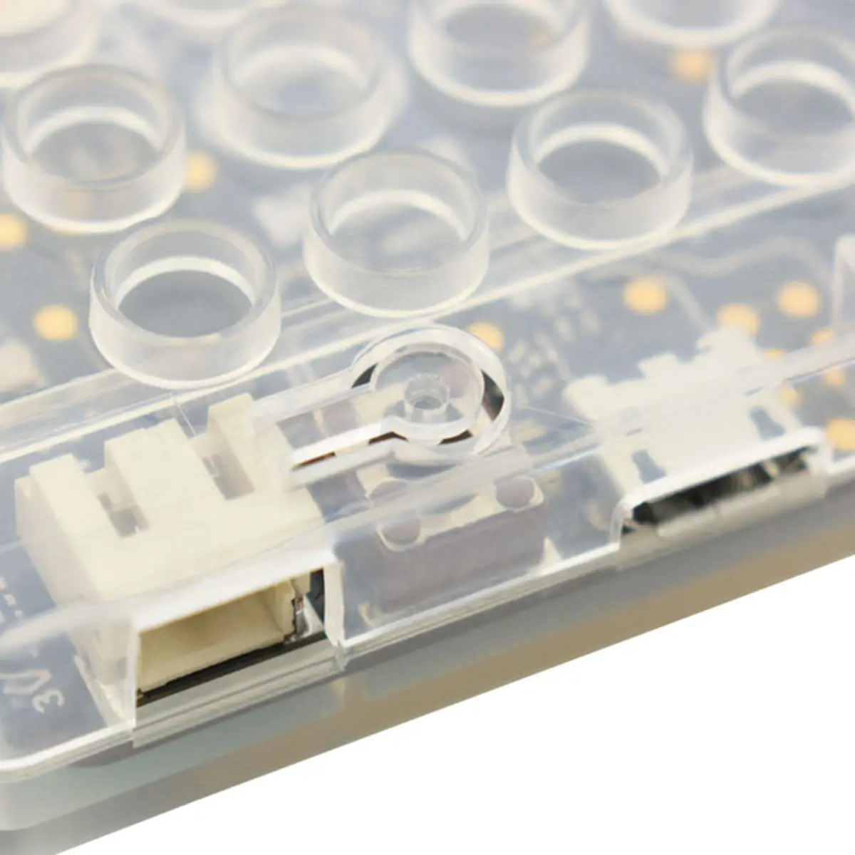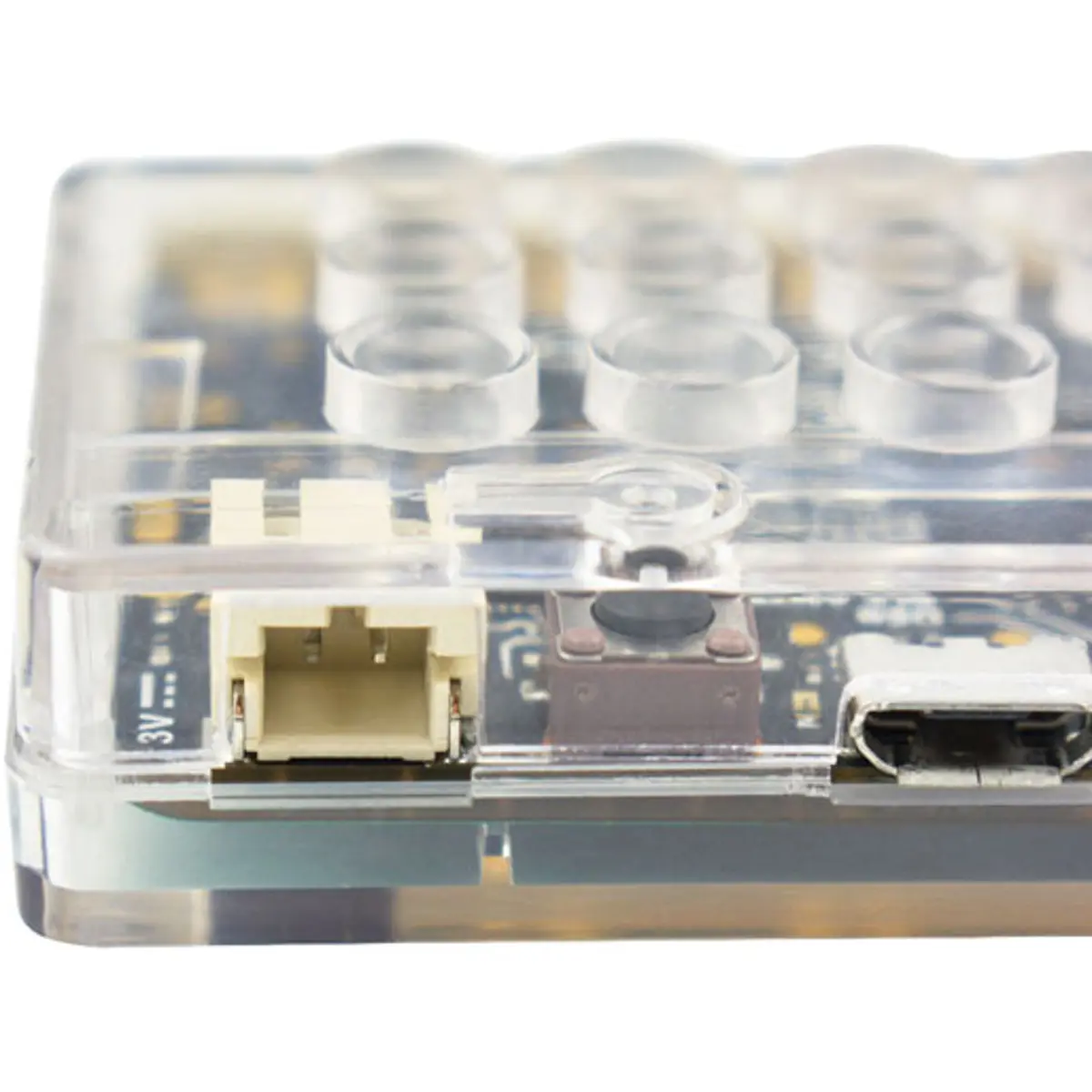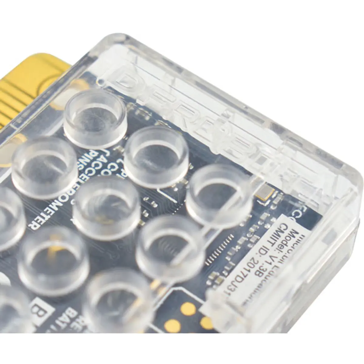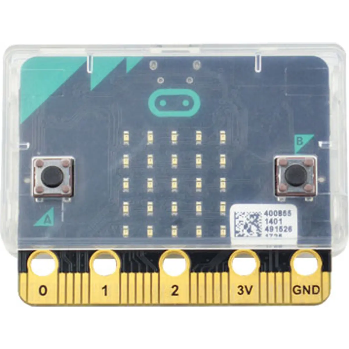 Caixa protetora transparente para placa educativa de microcontrolador, compatível com acessórios de montagem. Oferece botões A e B acessíveis, display de matriz LED visível e aberturas para ligação de bateria, USB e encaixe, facilitando a construção de projetos. Pode usar a caixa de bateria original, assegurando alimentação estável. Fabricada em ABS resistente, proporciona proteção contra choques e poeiras, mantendo acesso rápido a portas e contactos. Ideal para educação, robótica, eletrónica e projetos de aprendizagem STEM, promovendo a reutilização de componentes educativos de forma segura.