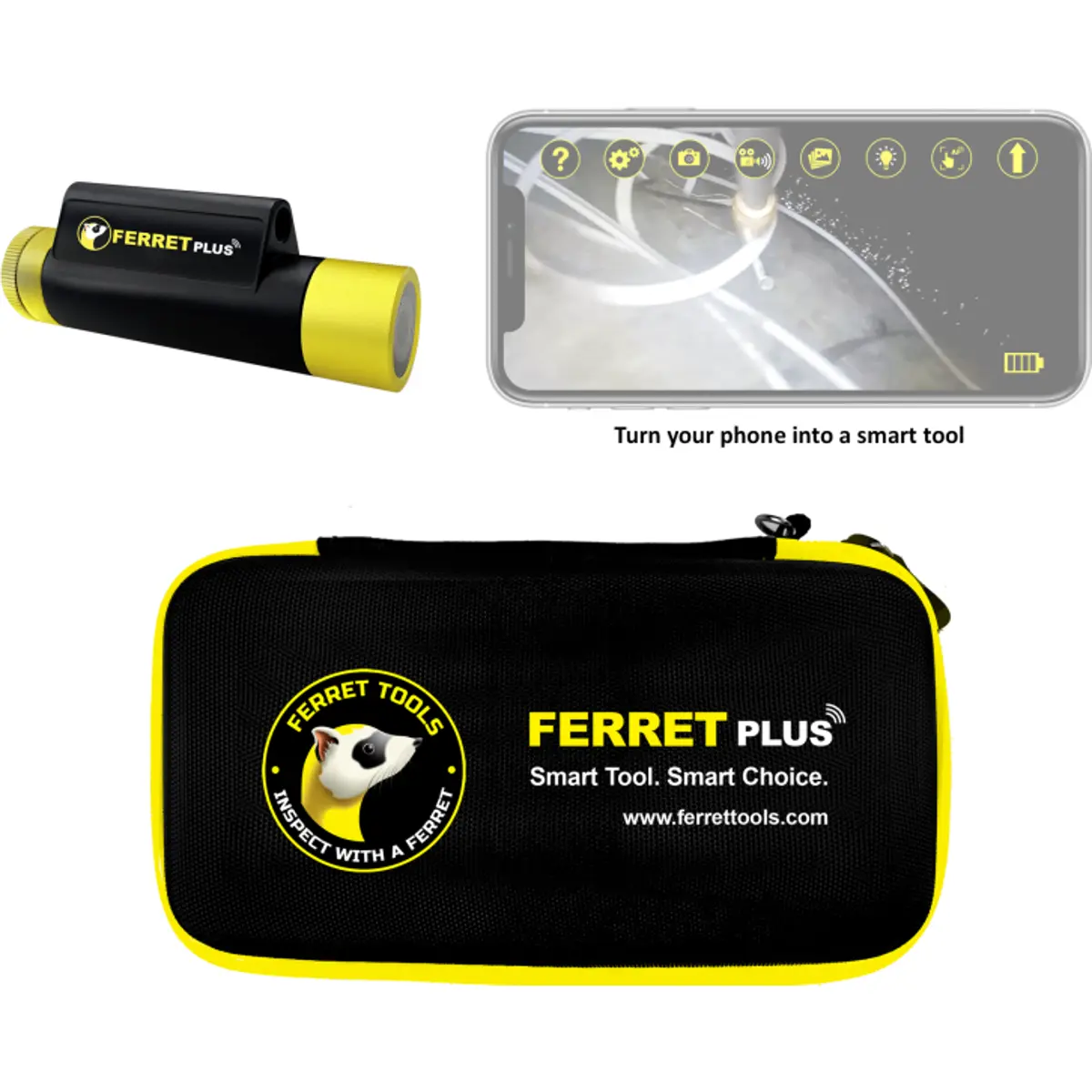 A Ferret Plus é uma câmara de inspeção profissional e durável, de última geração, equipada com recursos premiados, desenvolvidos a pensar nos trabalhadores que se preocupam em ter as ferramentas mais confiáveis e duráveis, com a mais recente tecnologia inteligente para ajudar a trabalhar mais rápido, mais fácil e seguro.