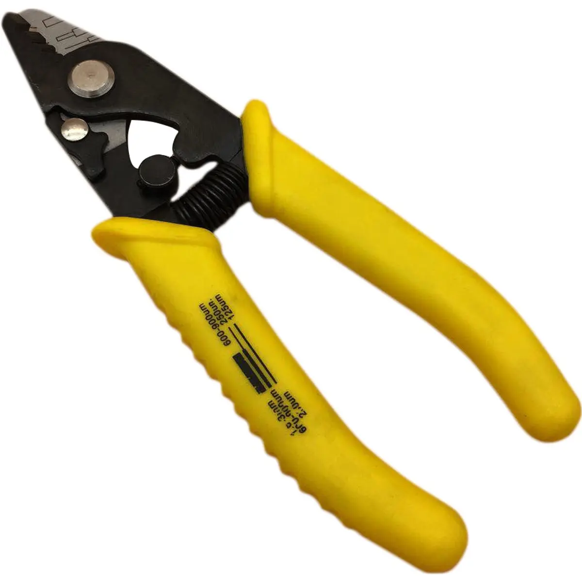 - A terceira descarna o revestimento de acrilato da fibra óptica (250 μm).